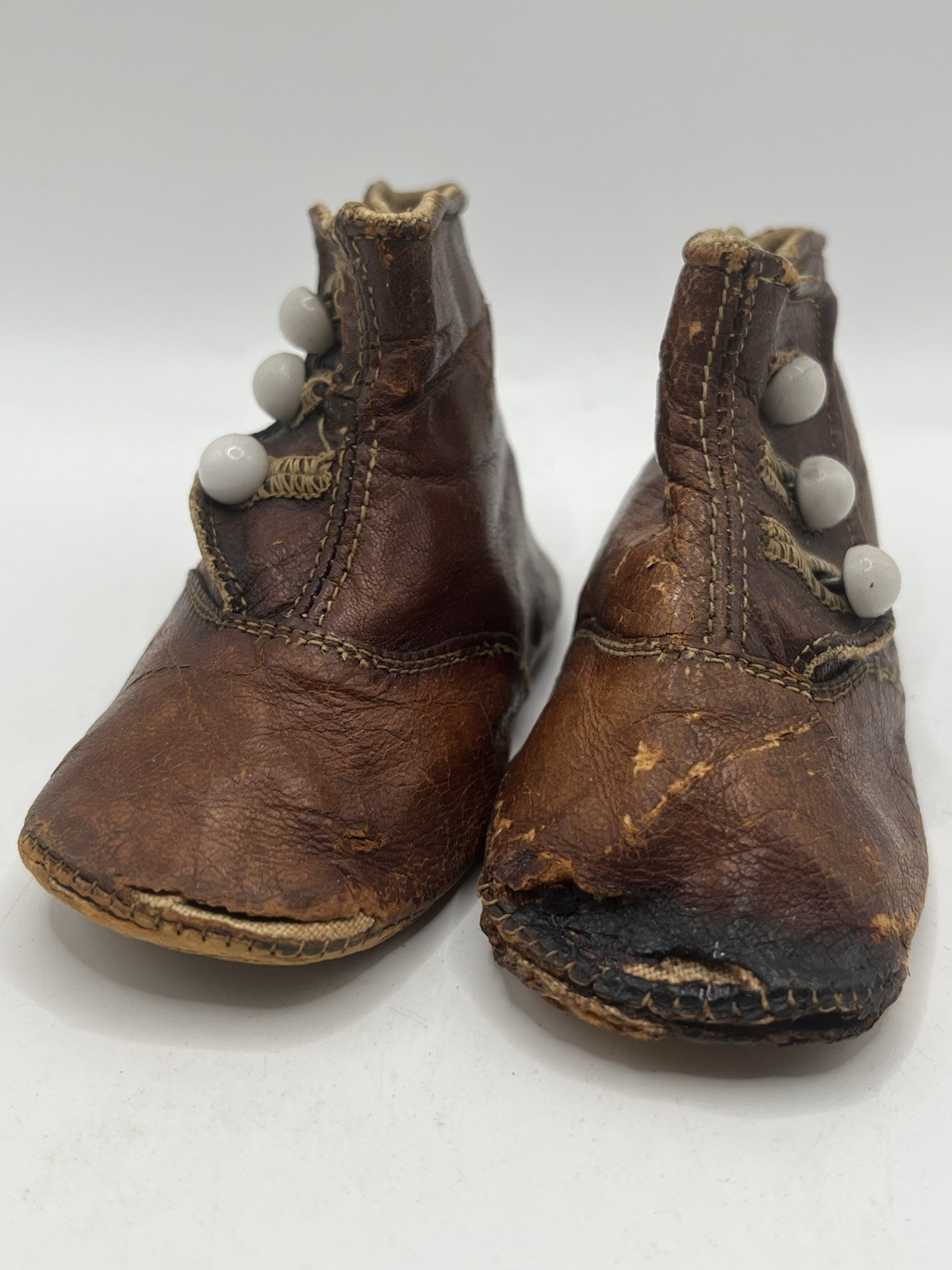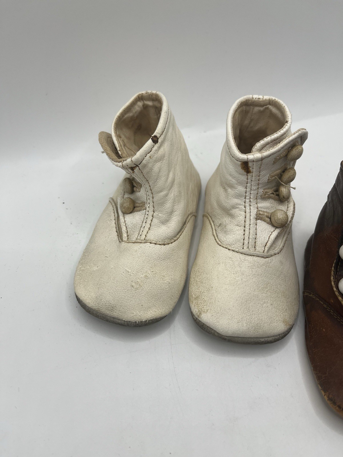 Antique Victorian Era Babies Leather Button Up Shoes 2 Pairs