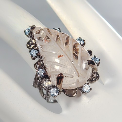 как выглядит 37 ct Natural Rutilated Quartz Ring 925 Sterling Silver Size 8.5 /R442764 фото