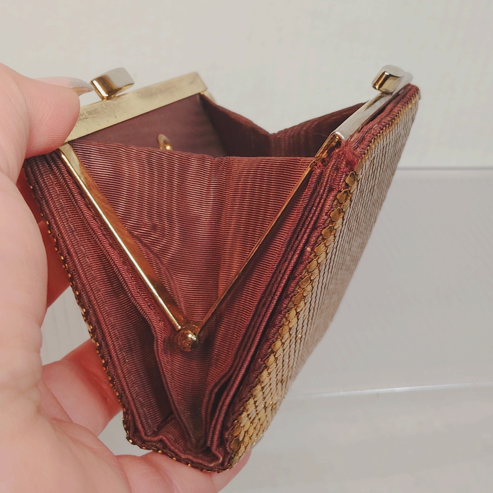 как выглядит Vtg Coin Purse Wallet Gold Mesh Kiss Lock Holds Cards фото