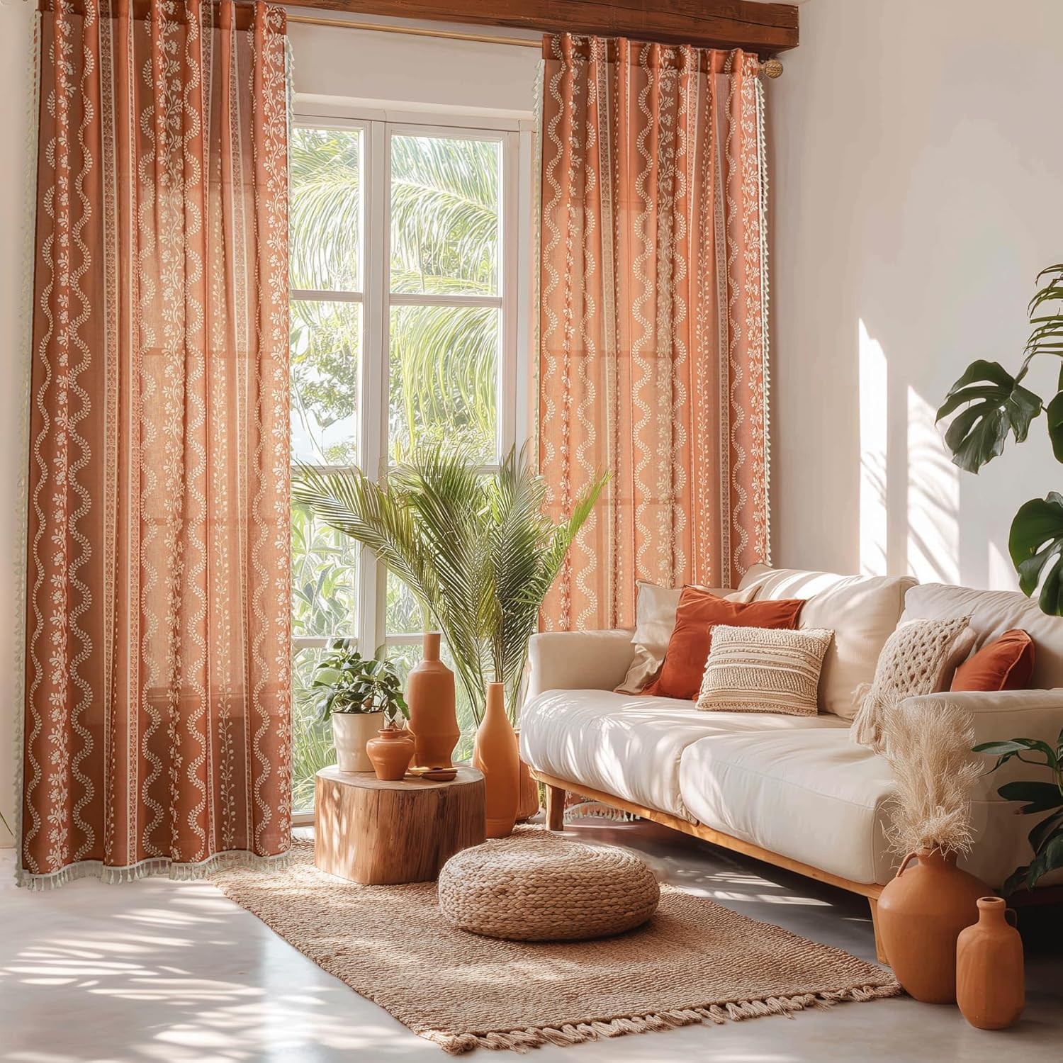 Boho Curtains Vintage Style Terracotta 50W x 84L 2 Pack