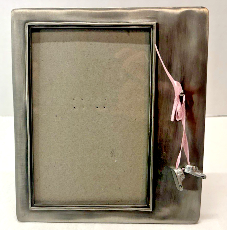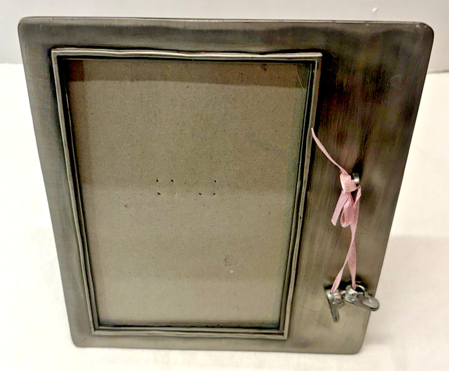 Connoisseur Pewter 4 x 6 Photo Picture Frame Pink Baby Bootie Charms