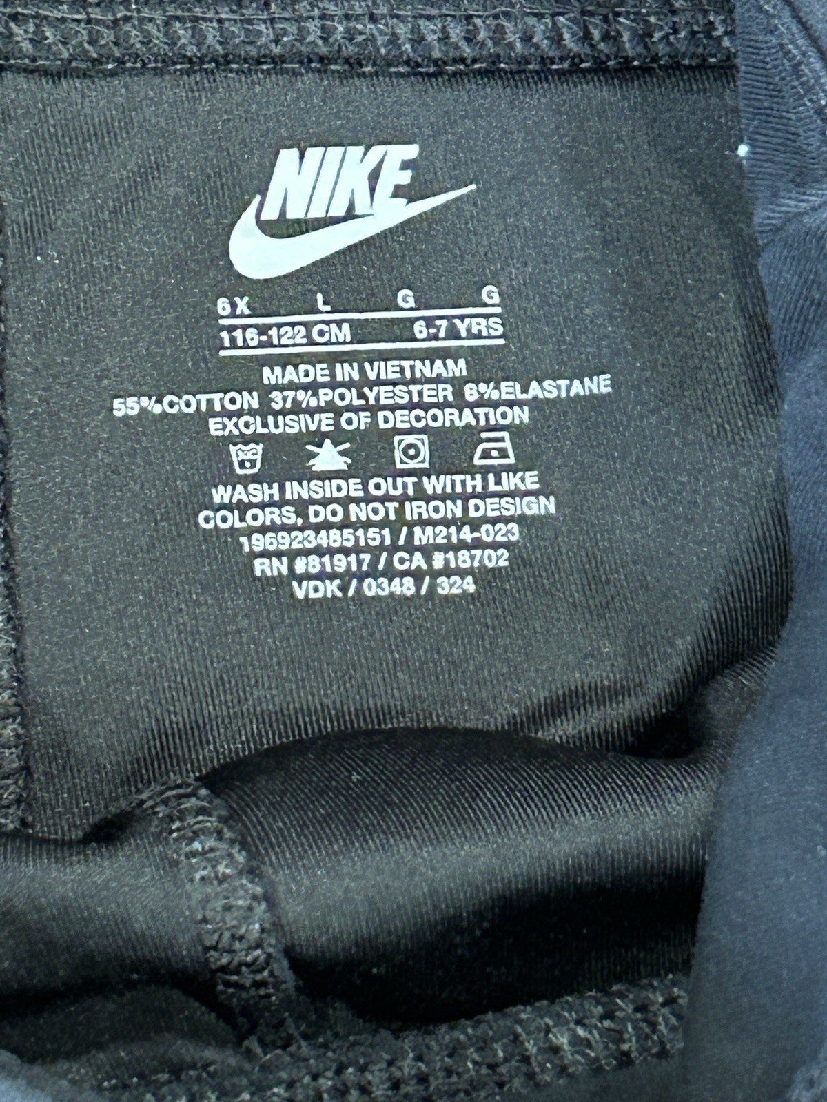 как выглядит Nike Girls Size 6X L Dri - Fit Leggings Black Flare 6-7 Years фото
