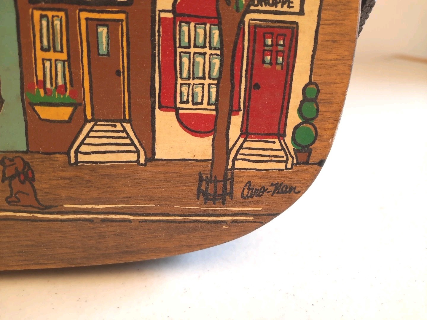 Caro Nan Purse Basket Bucket Penny Cincinnati Wood Quilted Lining Hand Painted