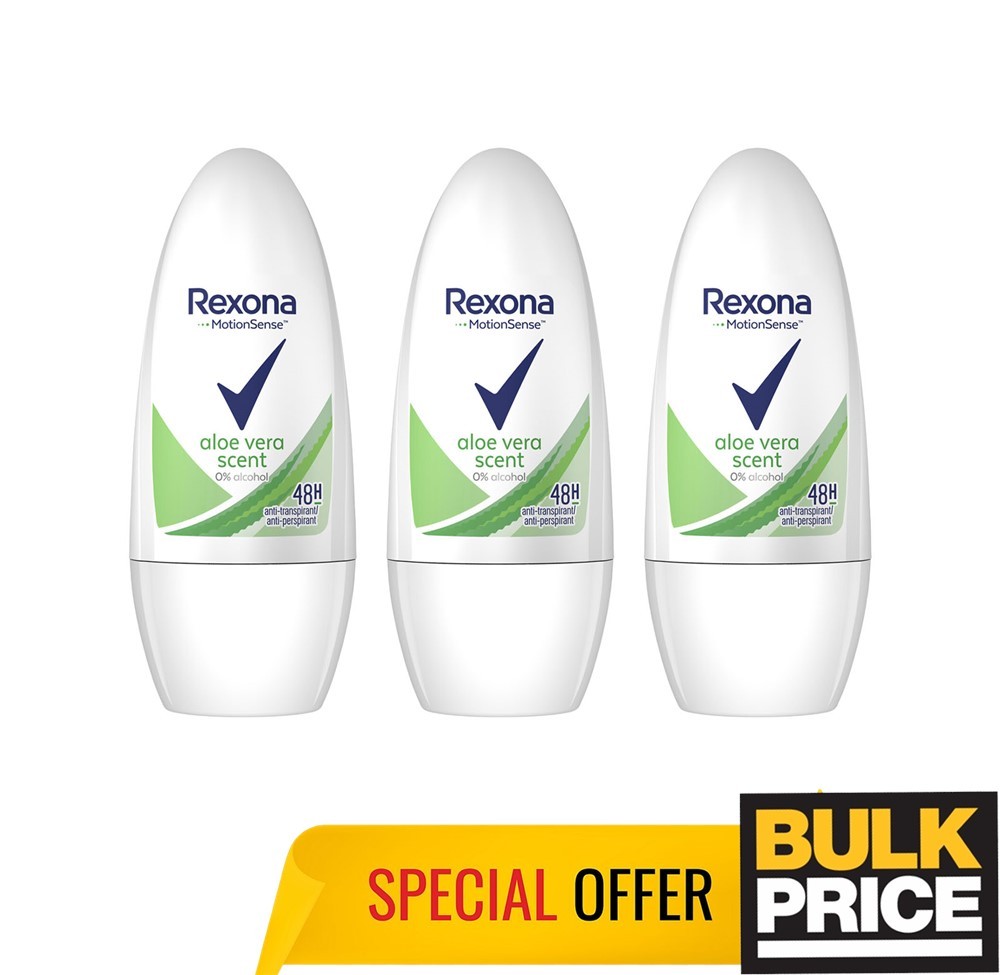 Rexona Aloe Vera Roll-On Deodorant 48H Freshness Sweat Odor Protection 3-Pack
