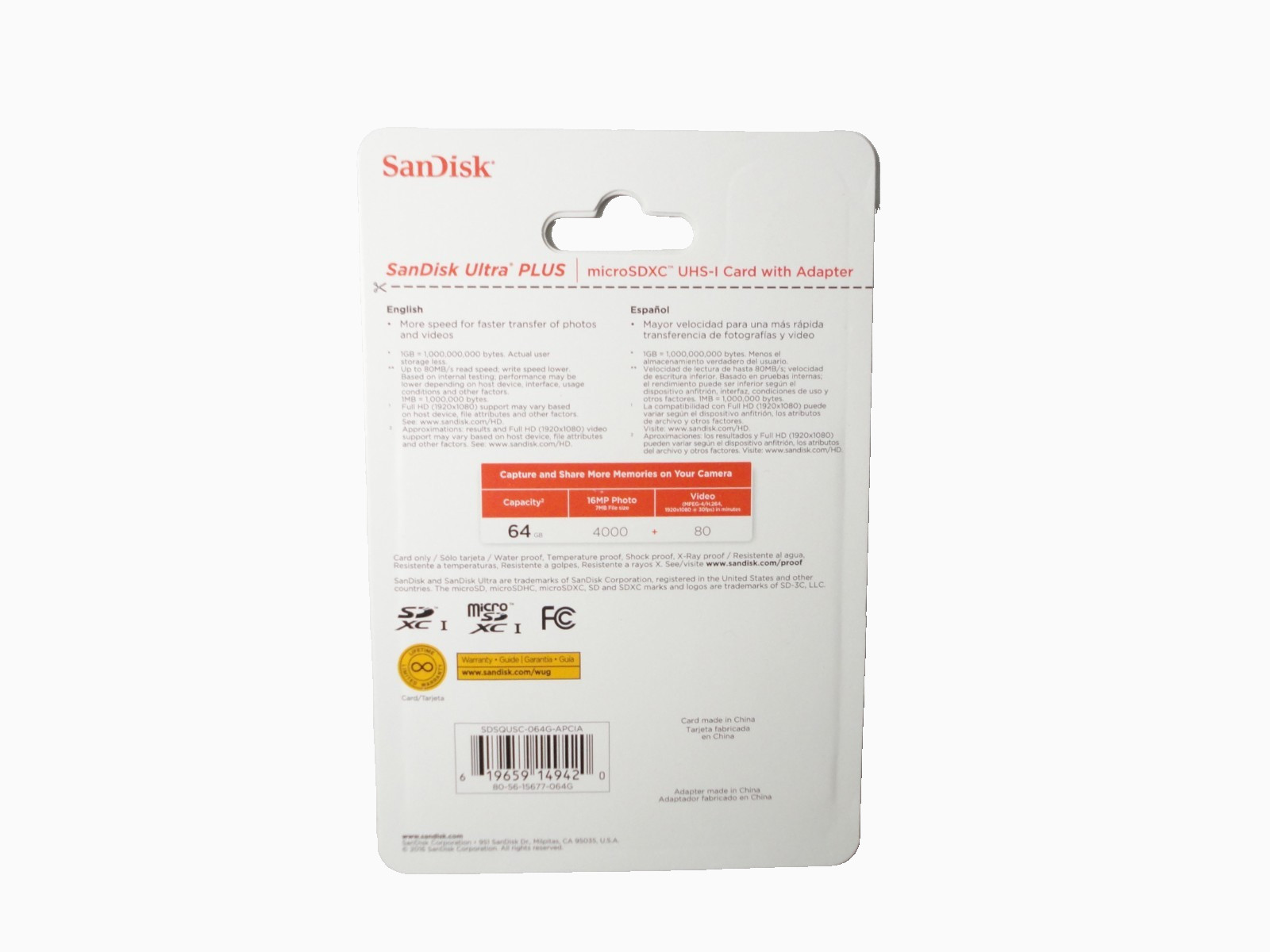 SanDisk Ultra Plus Micro SDXC with Card Adapter 64gb, 80MB/s