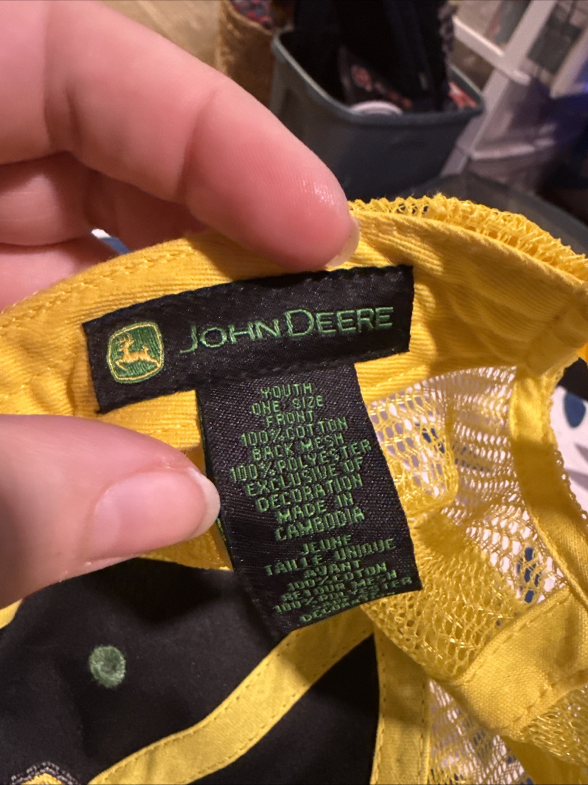 JOHN DEERE Youth One Size Snapback Adjustable Cap Meshback Hat Green Yellow