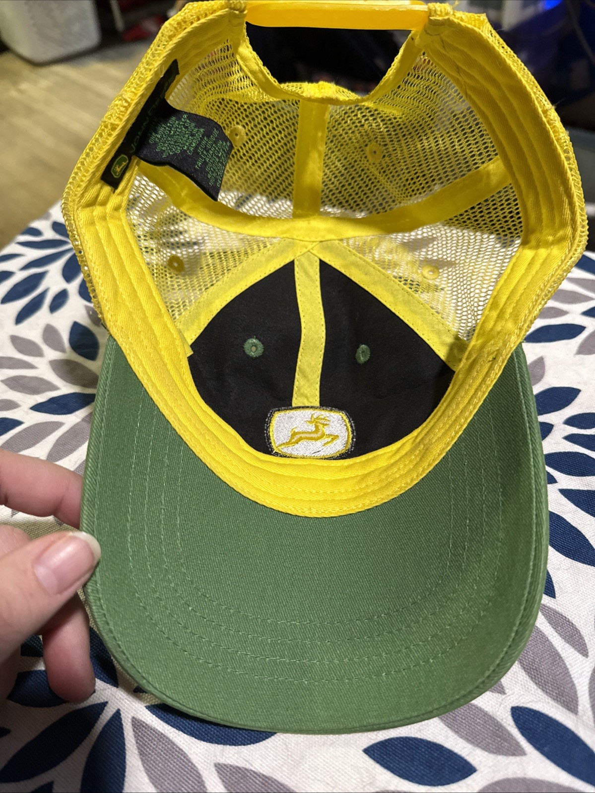 как выглядит JOHN DEERE Youth One Size Snapback Adjustable Cap Meshback Hat Green Yellow фото