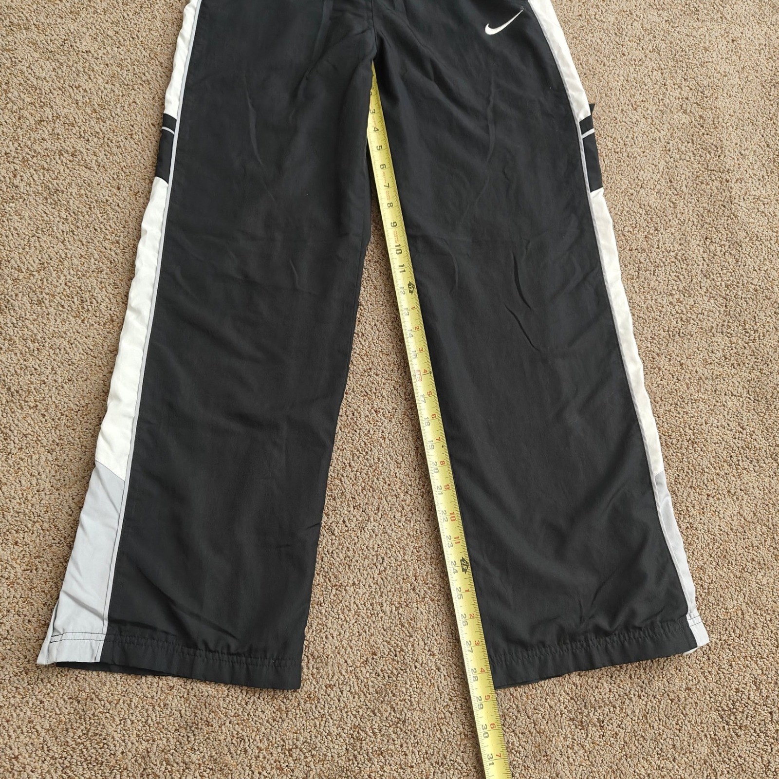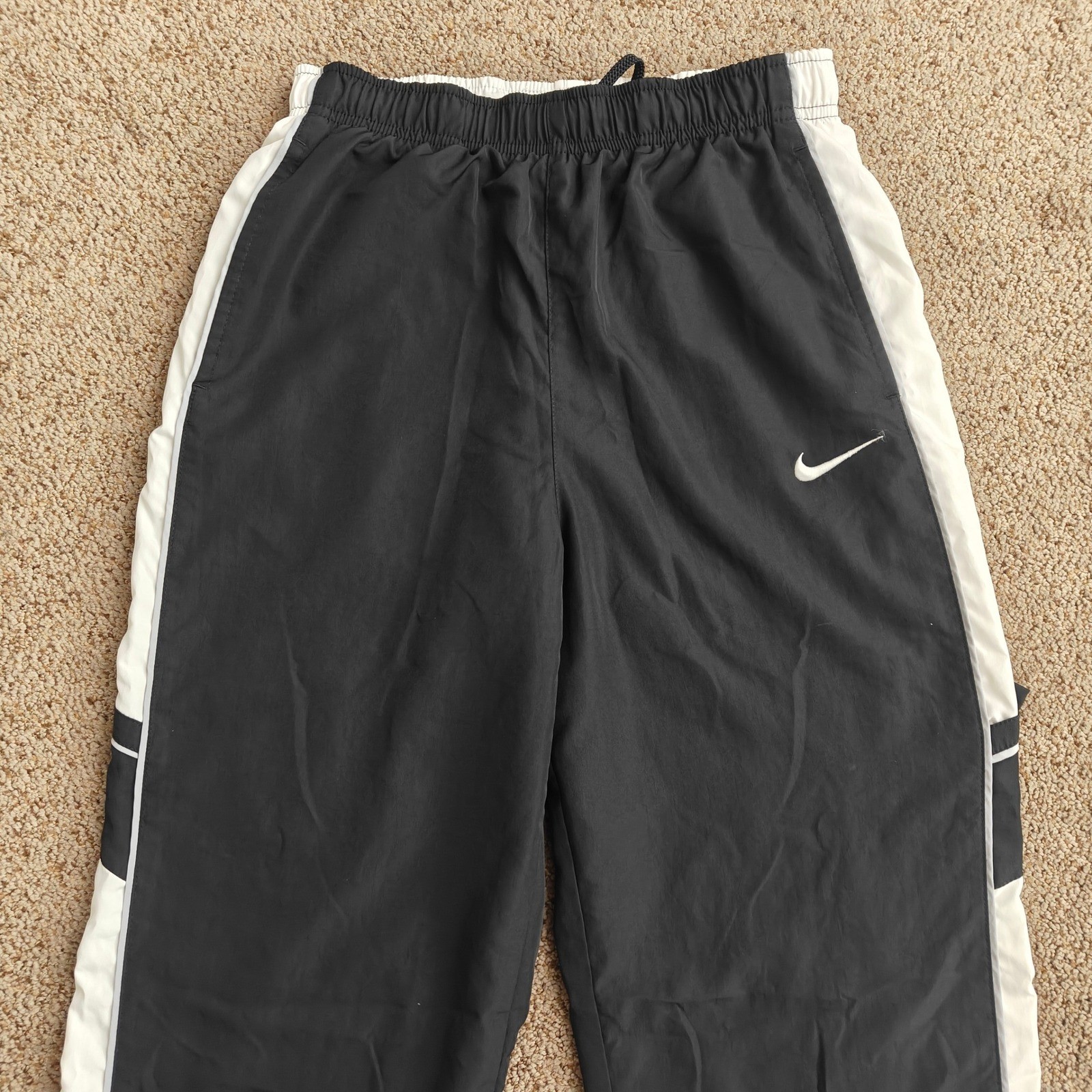 Vtg 90s Nike Black Nylon Windbreaker Pants Youth Large Ankle Zip Swoosh Lined