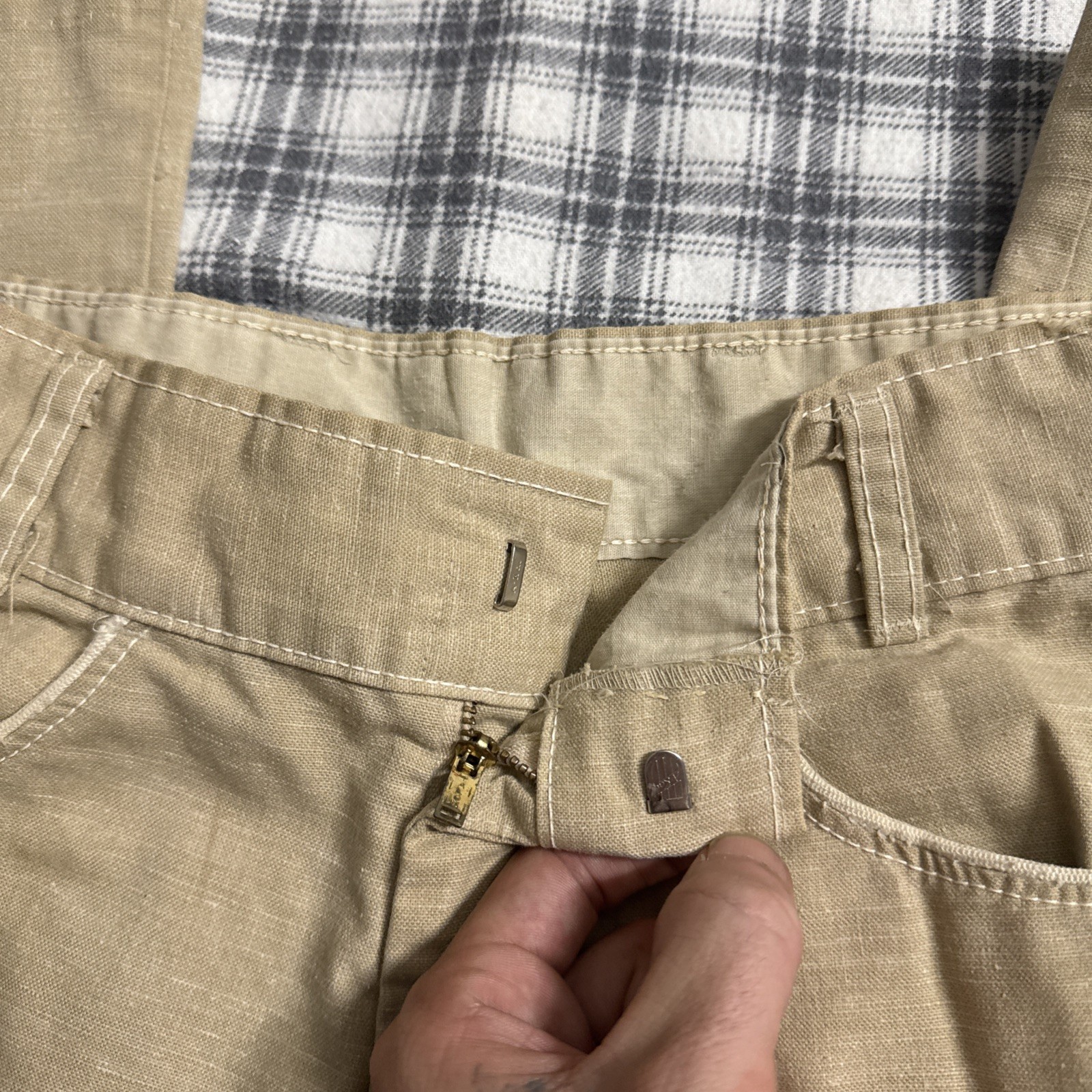 как выглядит True Vintage 50s60s70s Tan Linen Work Pants 28x28 Talon Zipper USA Rockabilly фото