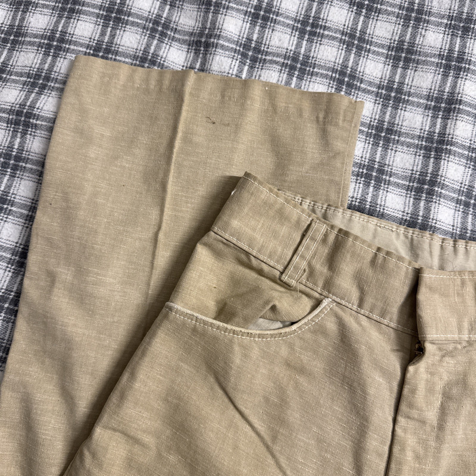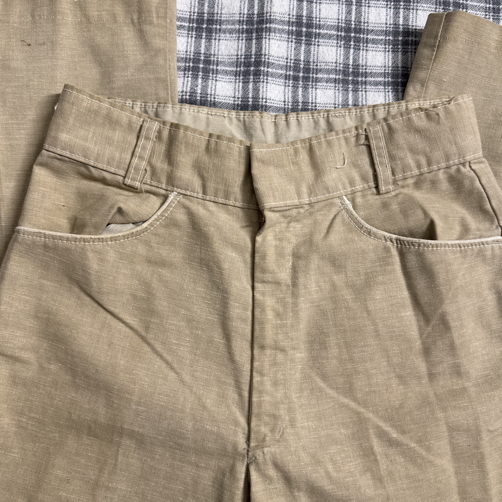 True Vintage 50s60s70s Tan Linen Work Pants 28x28 Talon Zipper USA Rockabilly
