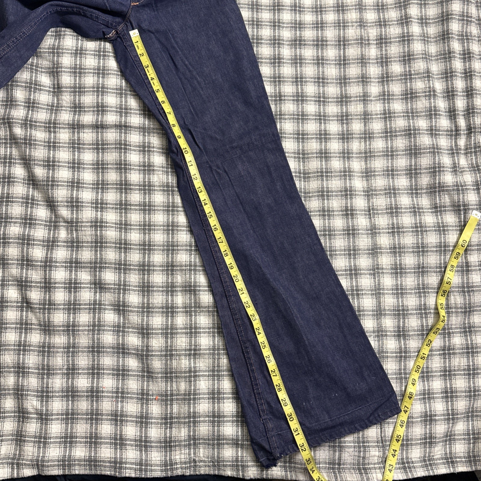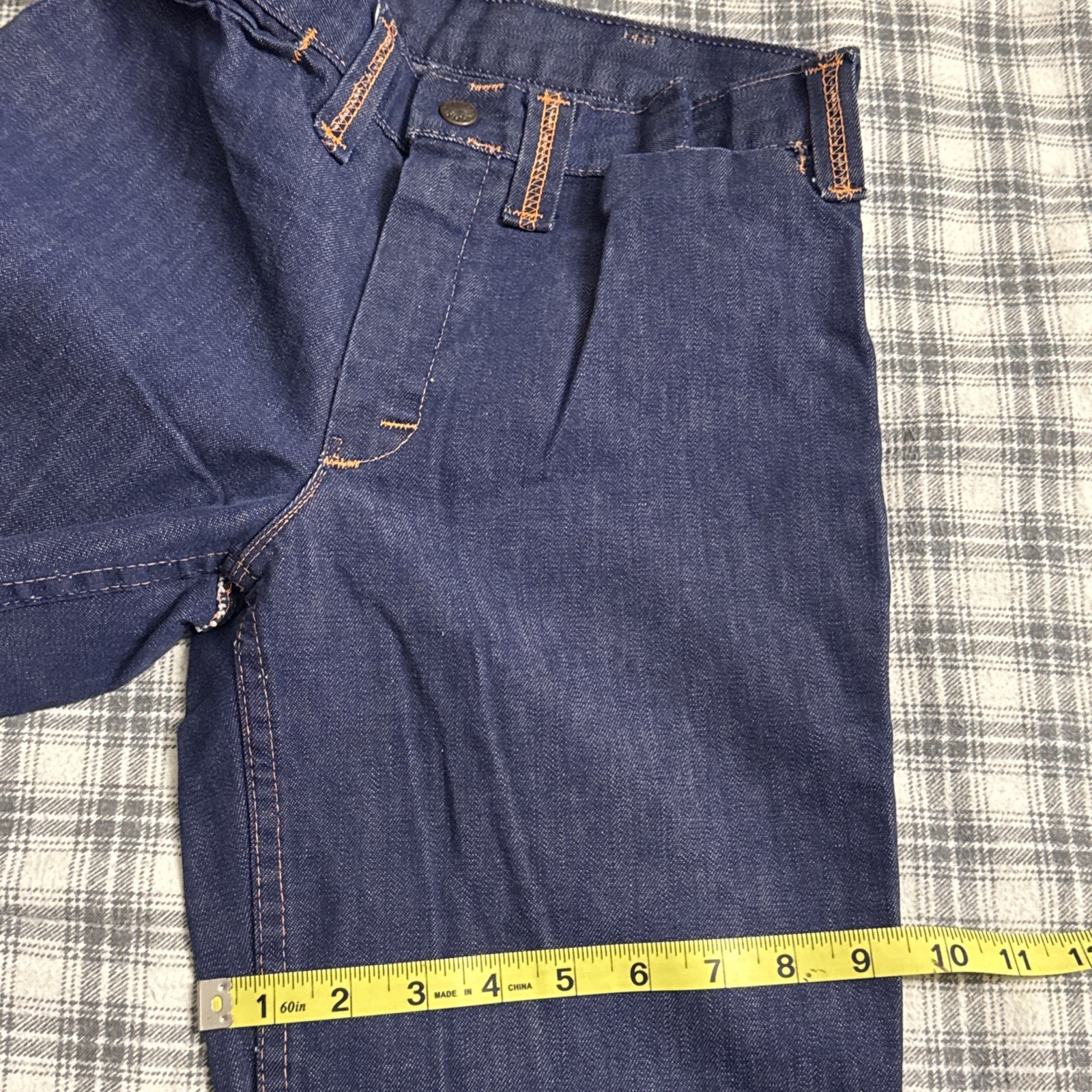 Vintage Denim Flare 1970s 6/8 28in Waist High Rise Pants Dark Denim Orange USA