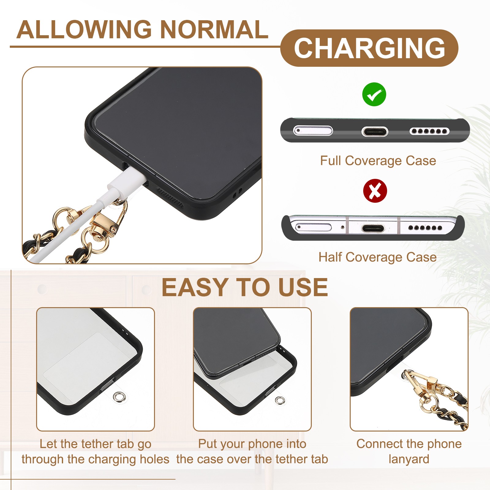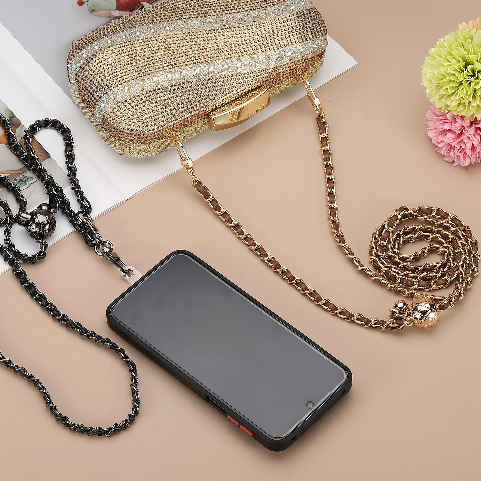 Phone Lanyard, 47 Adjustable Crossbody Phone Gold Chain with Tether Tab, Red