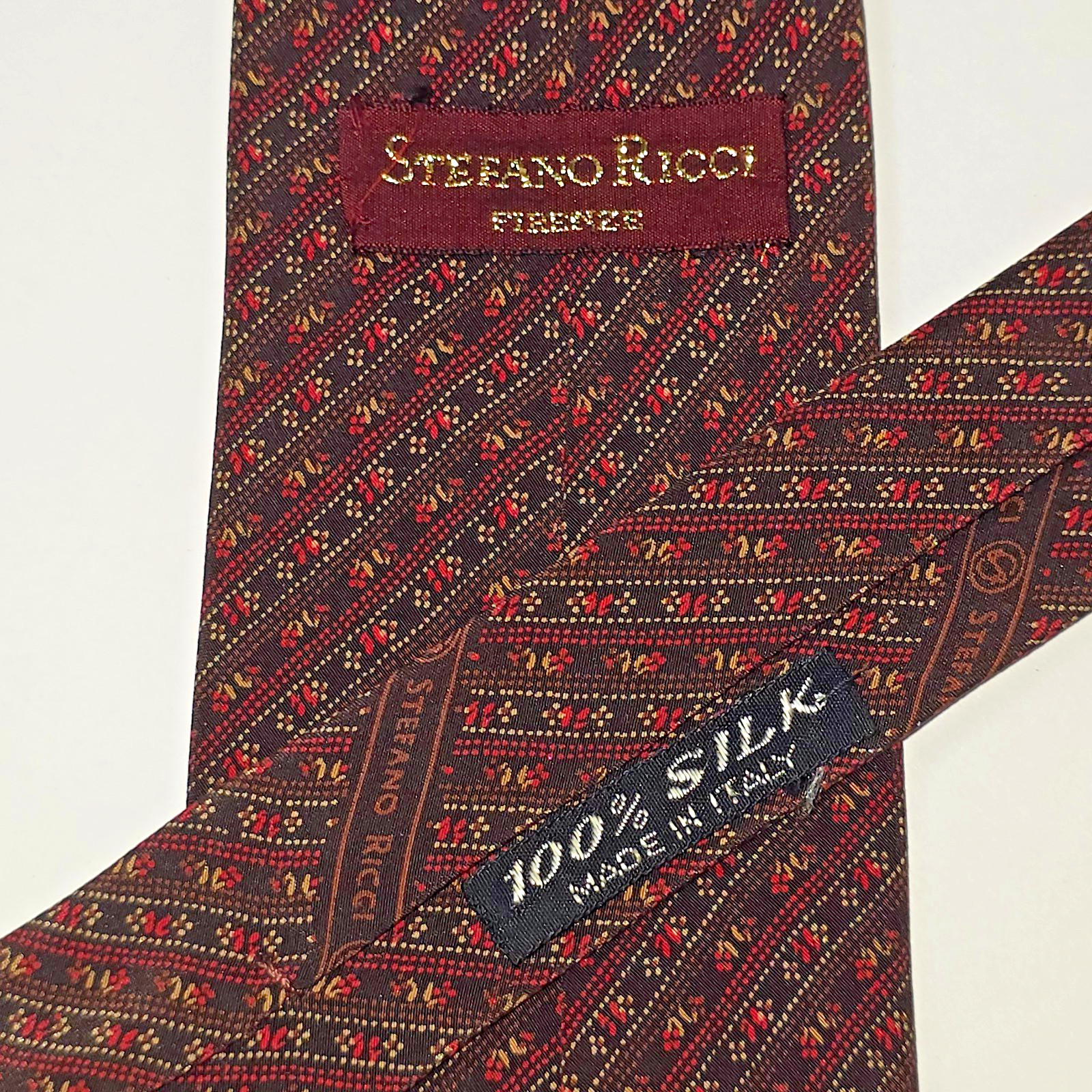 Stefano Ricci Silk Tie Brown Cherry Floral Motif Italian Luxury Designer Men s