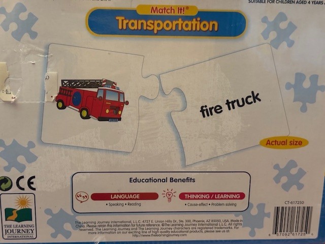 The Learning Journey Match It TRANSPORTATION Game 30 Puzzle Card Sets NEW