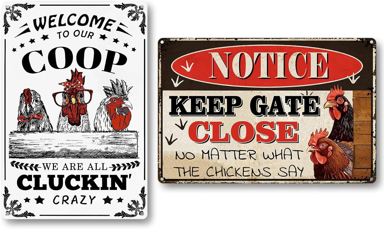 Chicken Signs 2 Pack-Metal Chicken Signs for Coop Funny Outdoor,Chicken Sign Dec
