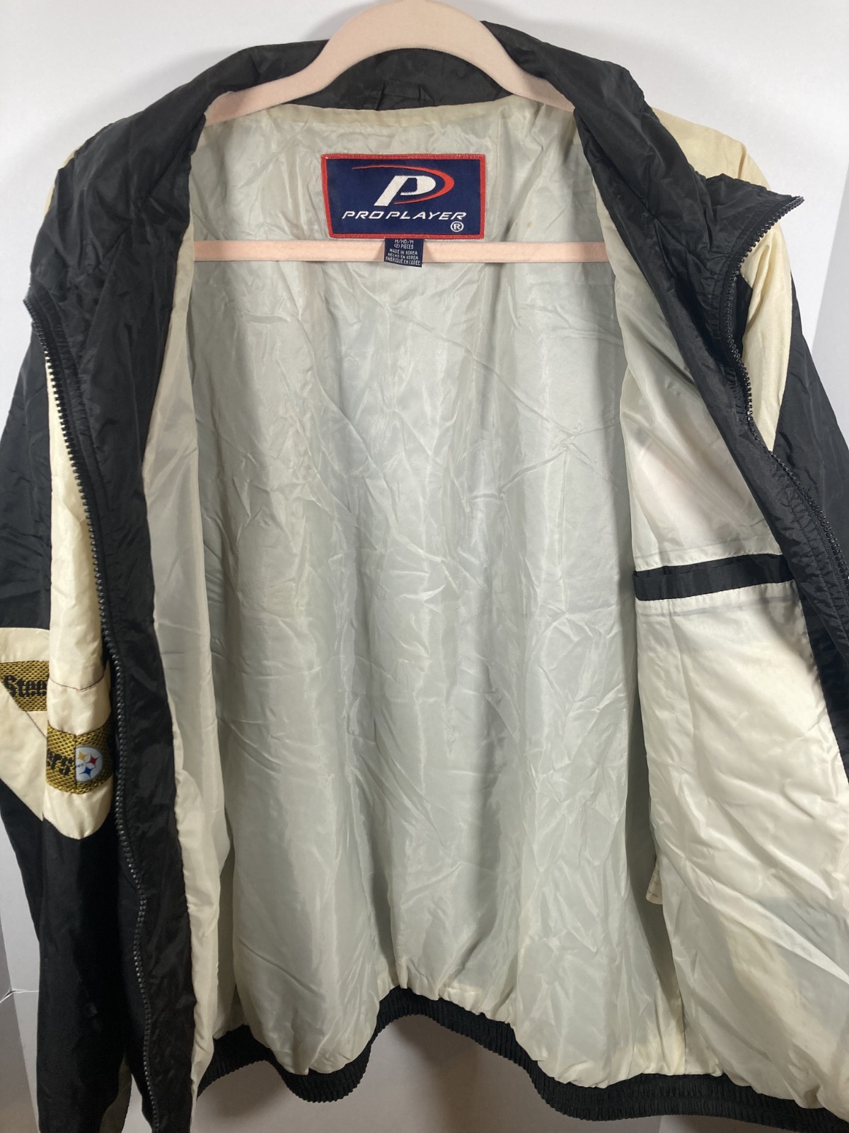 • Vintage Pittsburgh Steelers Pro Player Jacket Men s Medium NFL Zip Black Gold