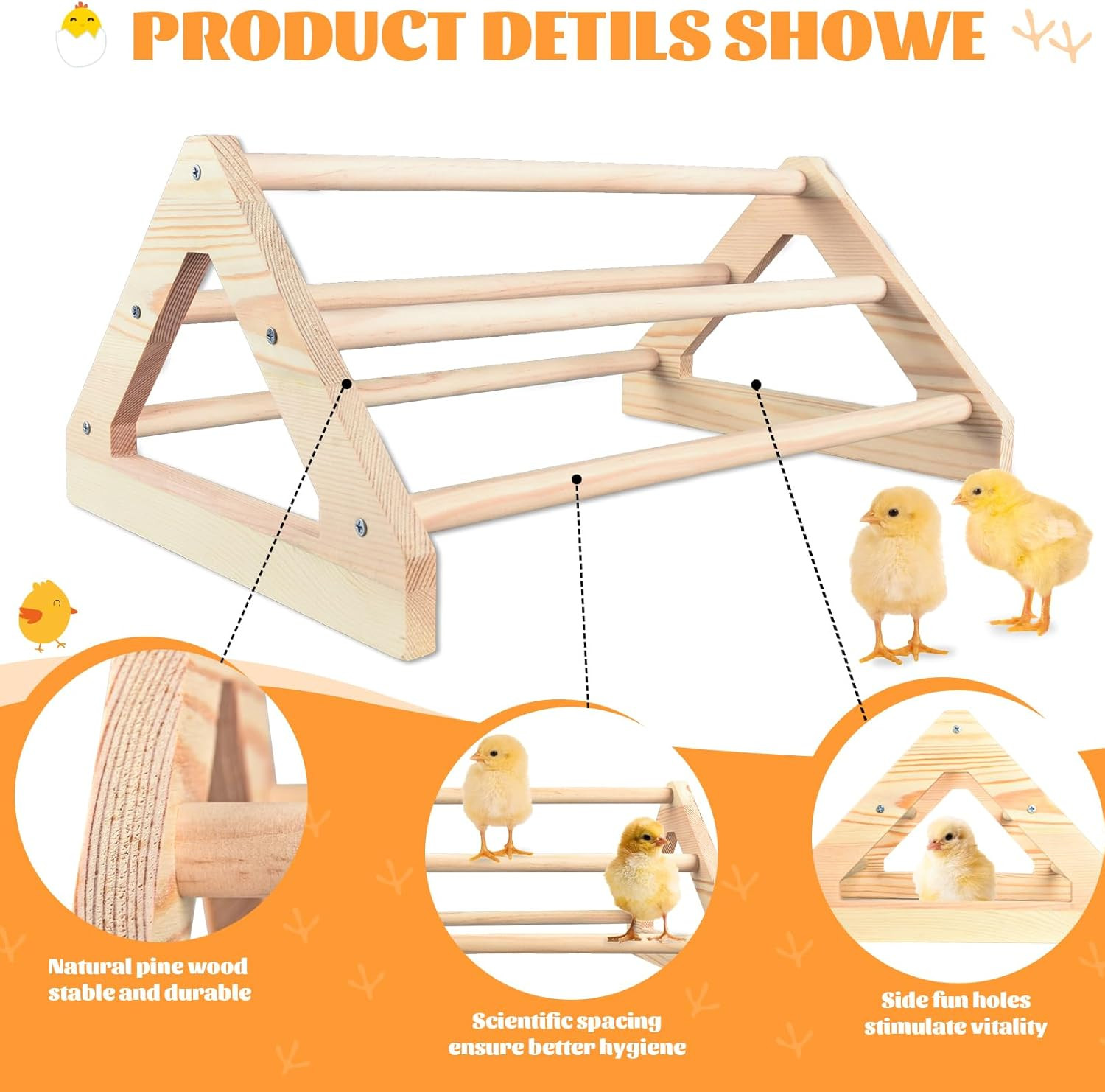 2 Pcs Long Pine Wooden Chick Perch Set, Strong Pine Wood Roosting Bar with Ho...