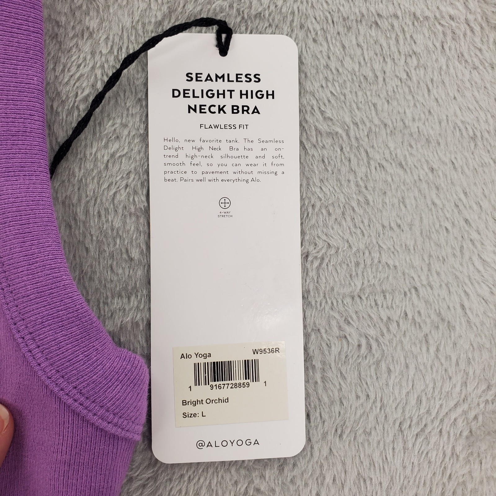 как выглядит Alo Yoga  Seamless Delight High Neck Bra Bright Orchid Ribbed  Women s Sz L фото