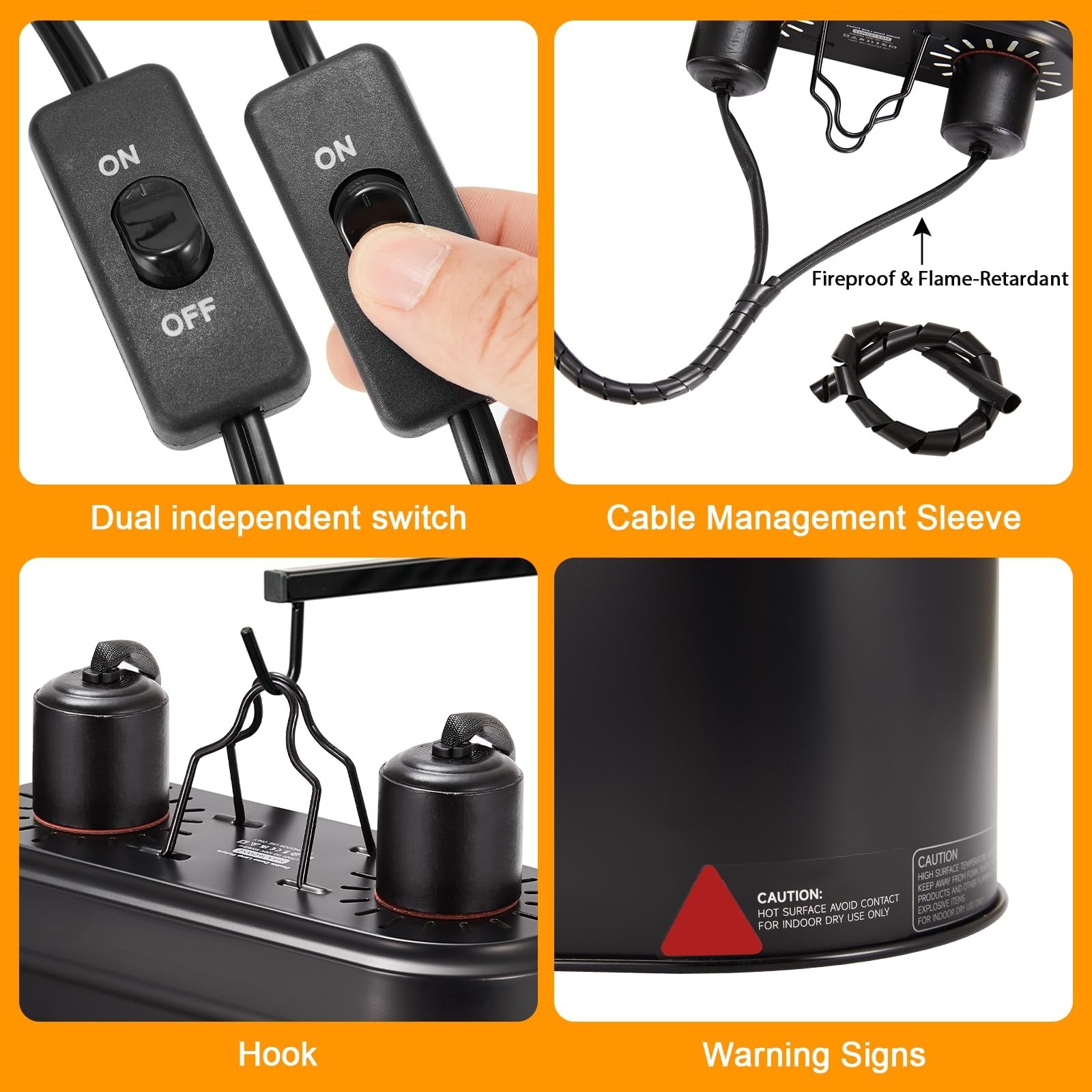Dual Reptile Light Fixture with Switches, Reptile Heat Lamp Fixture, Reptiles...