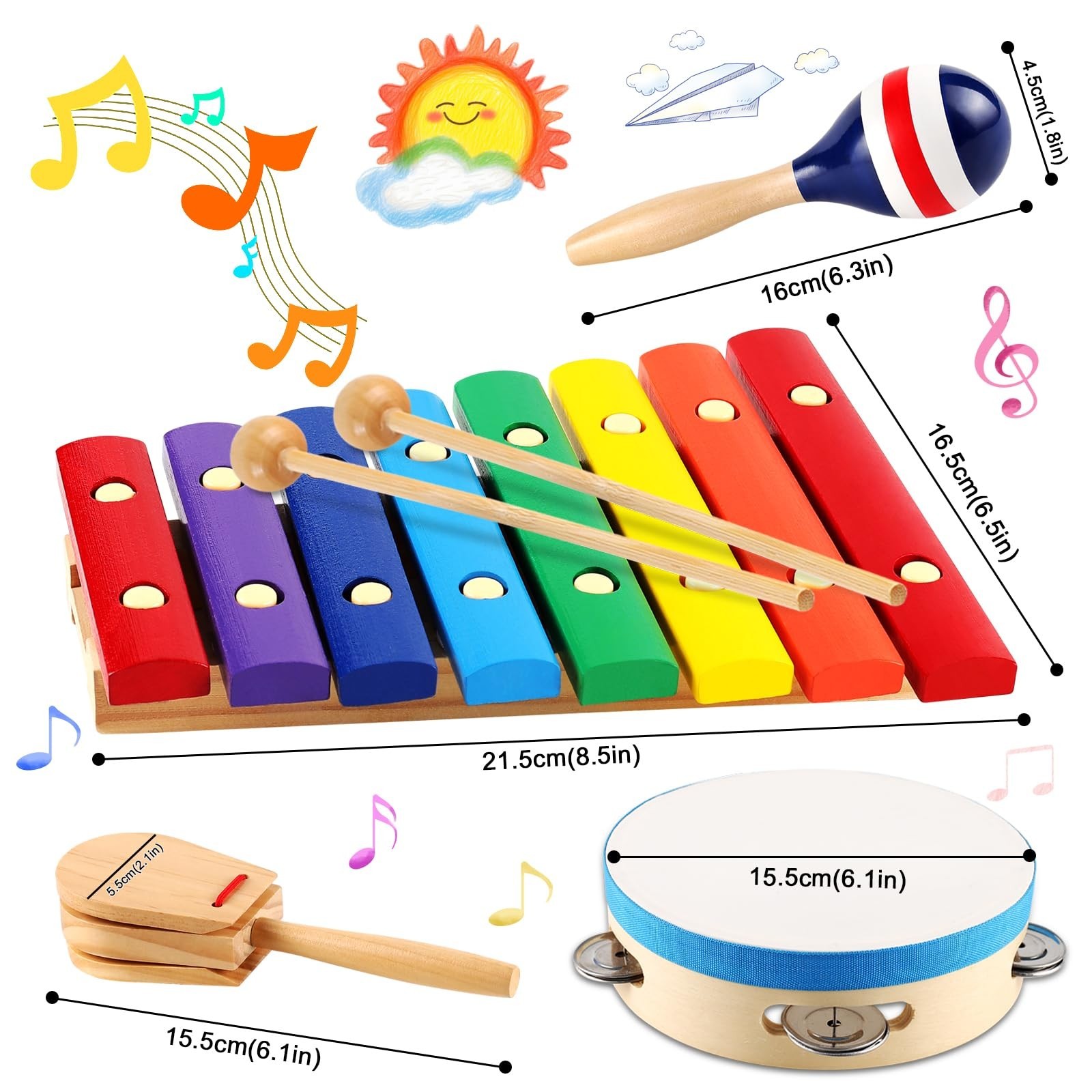 LOOIKOOS Kids Musical Instruments Montessori Wooden Toys for Toddlers,Percuss...