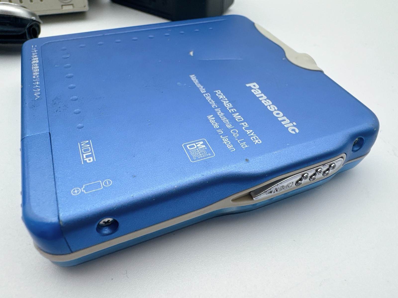 Panasonic SJ-MJ15 MiniDisc Player Blue Tested w/ Remote Stand AC Adapter
