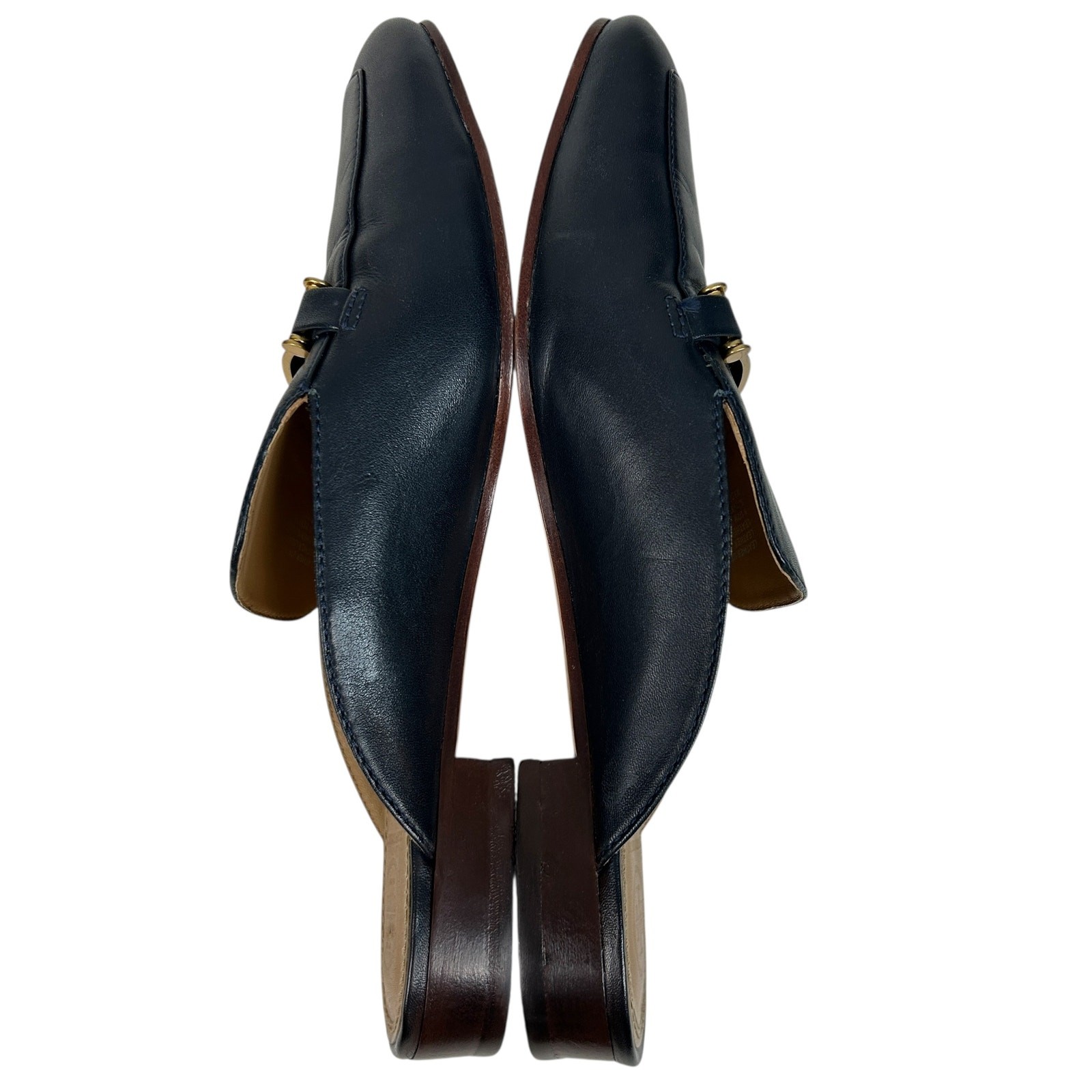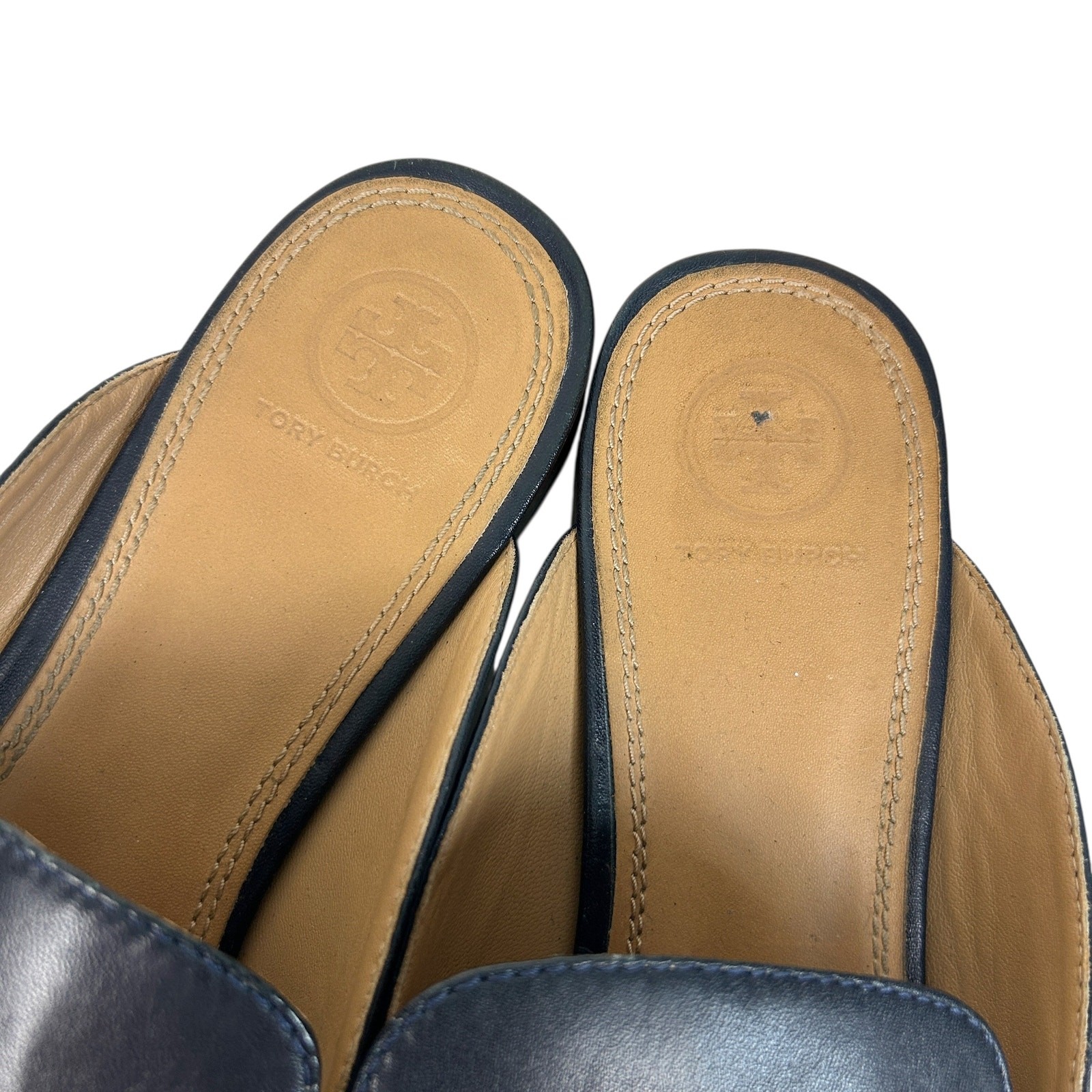 Tory Burch Amelia Navy Blue Leather Logo Slip On Leather Mules 9.5