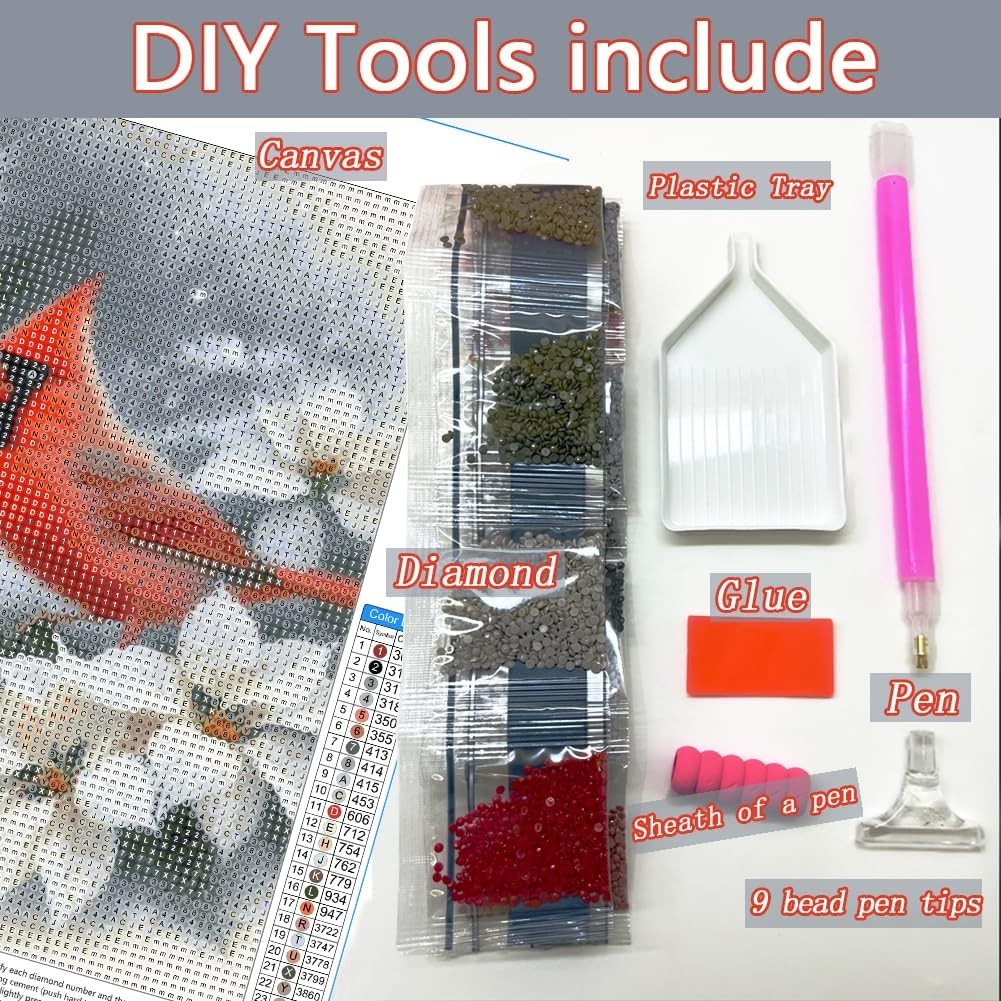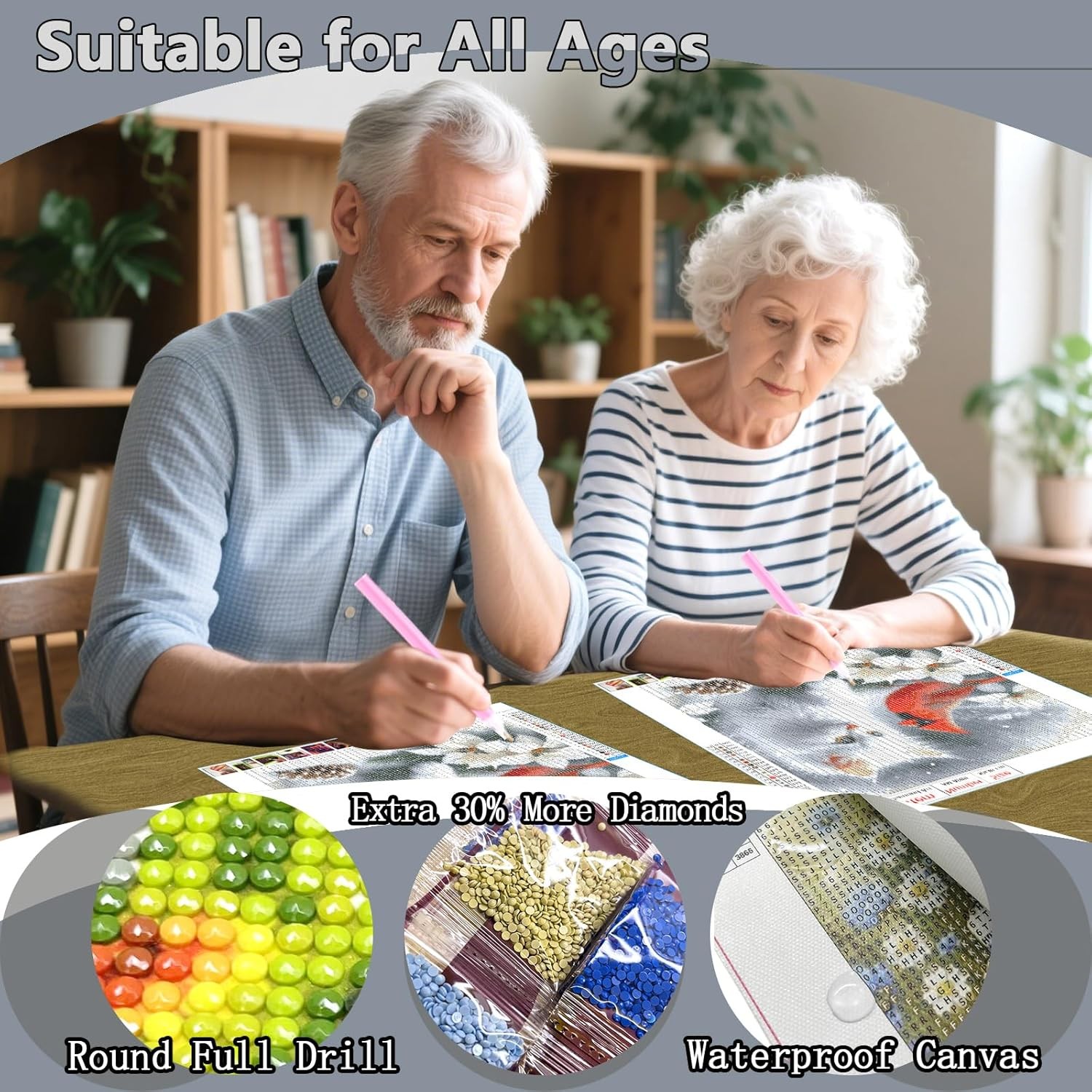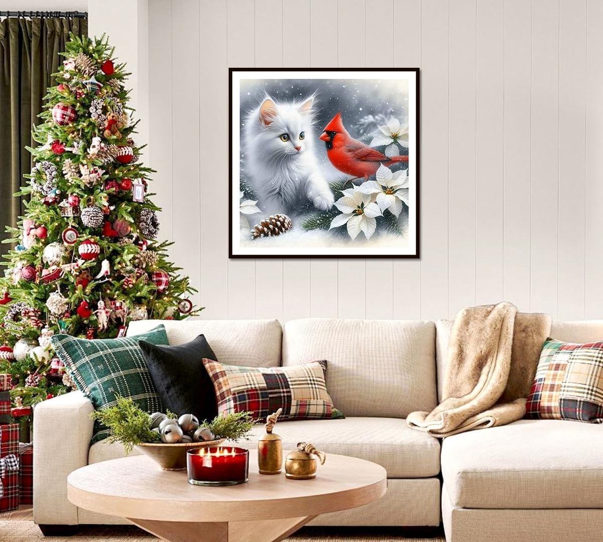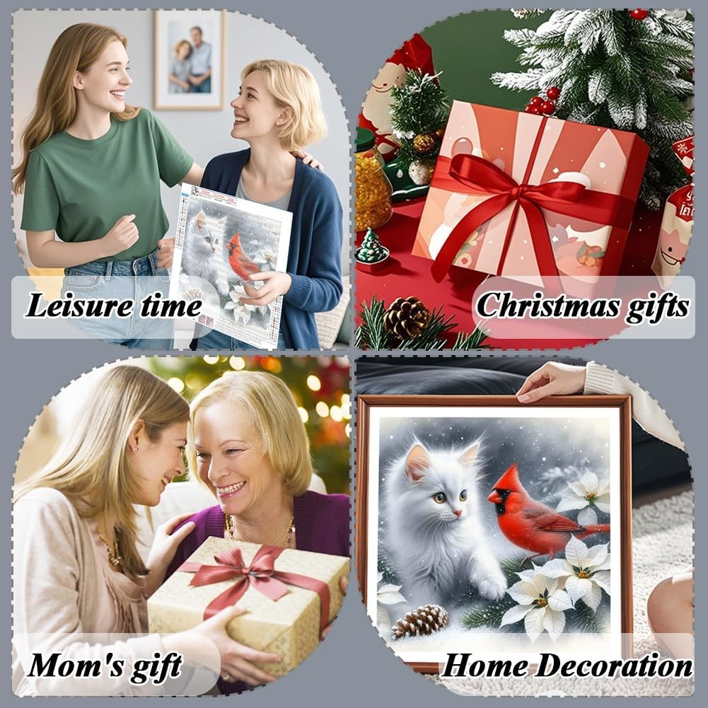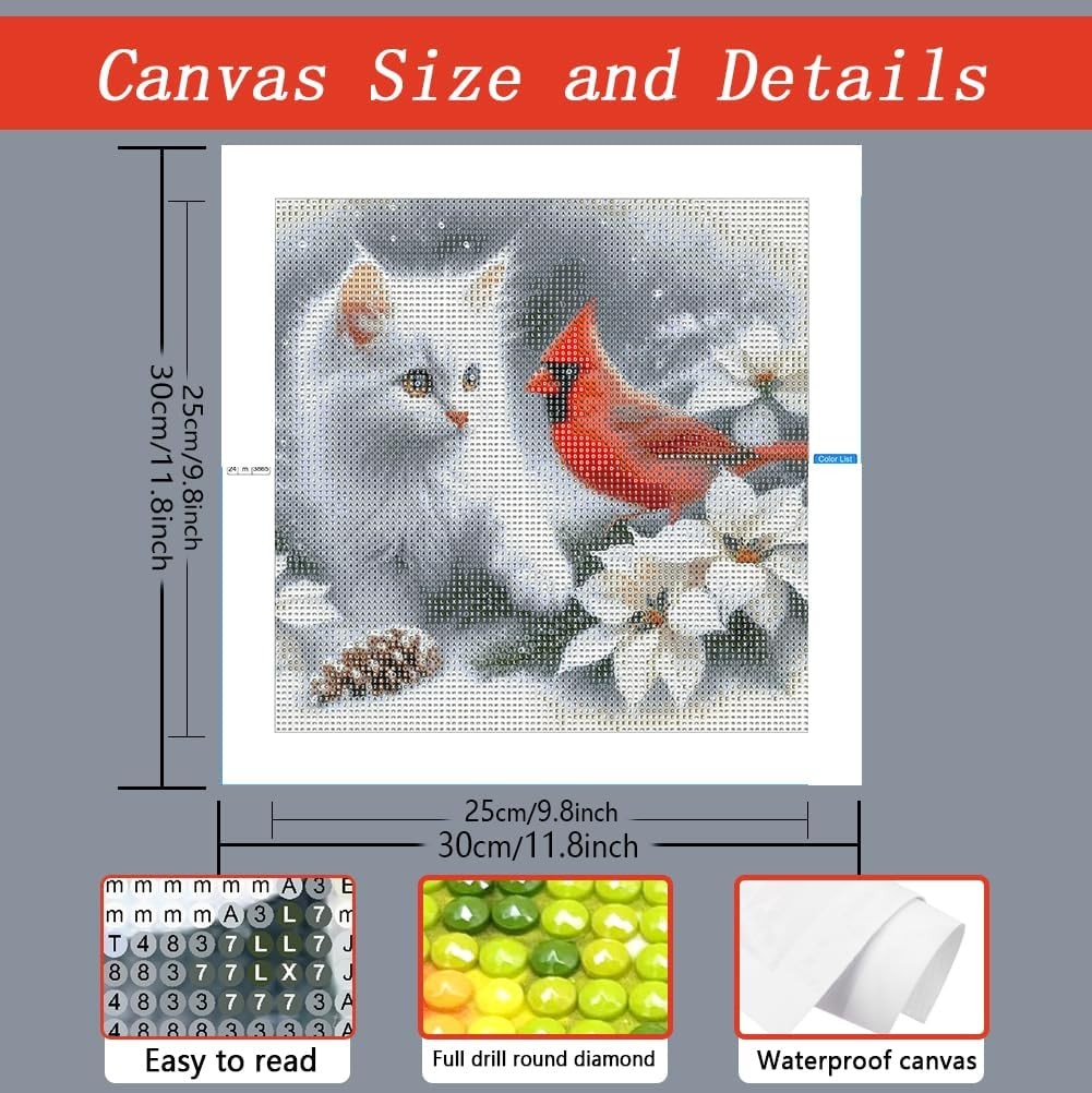 Cat and Cardinal Diamond Art Kits for Adults - 5D Diamond Painting Kit for Begin