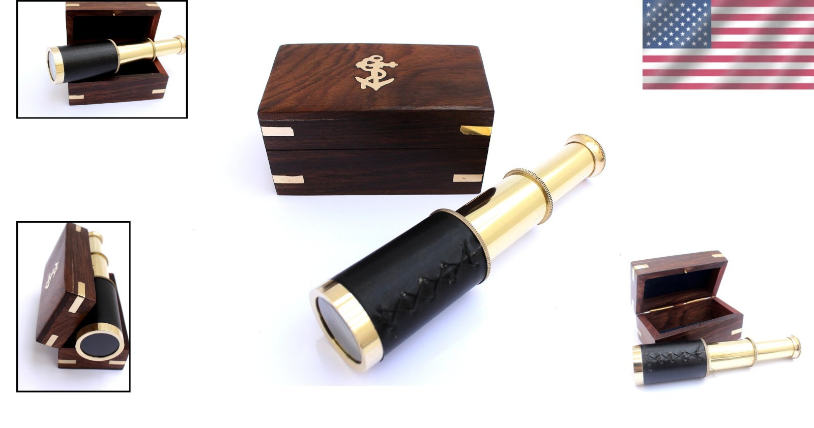 Особенности: Waterproof, Water-Resistant, Manual Focus, Fully functioning, Brass Telescope, Black Leather, Wooden Box, Brass Anchor, Hand-Made, Collector's Item, Home Decorative Item, Nautical Gift, Theme Party Decorations