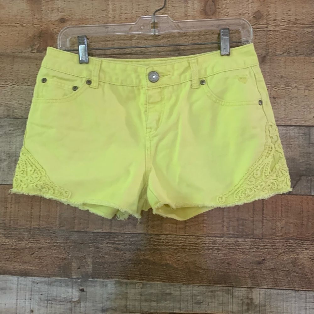 как выглядит Justice yellow embroidered shorts, size 18r фото