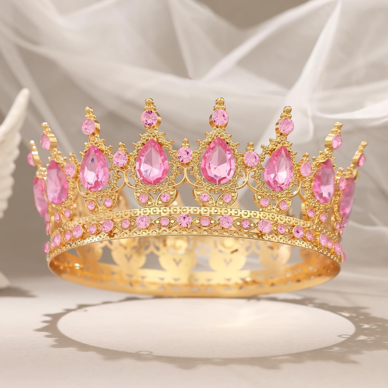 Pink Crown for Women Crystal Tiara and Queen Wedding All