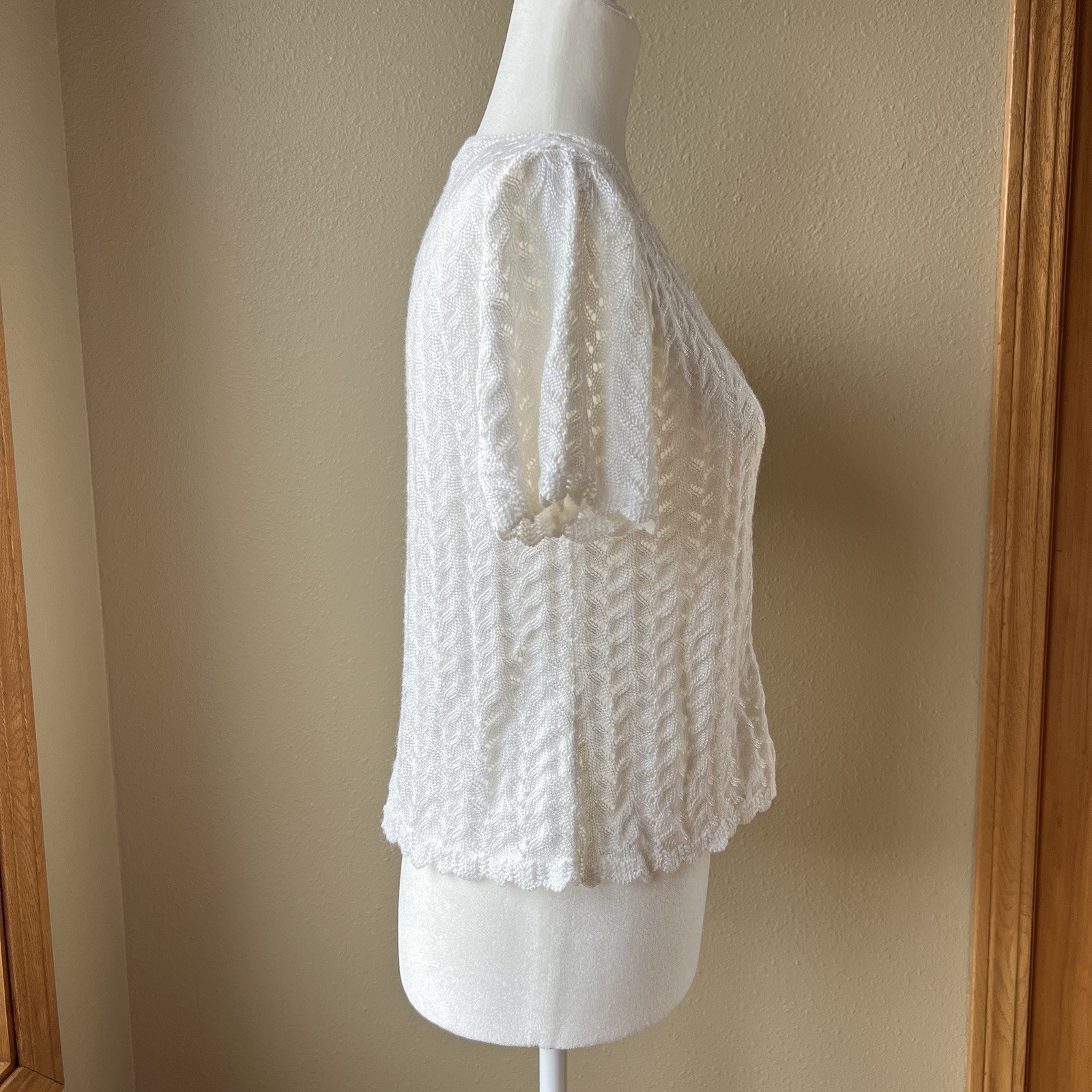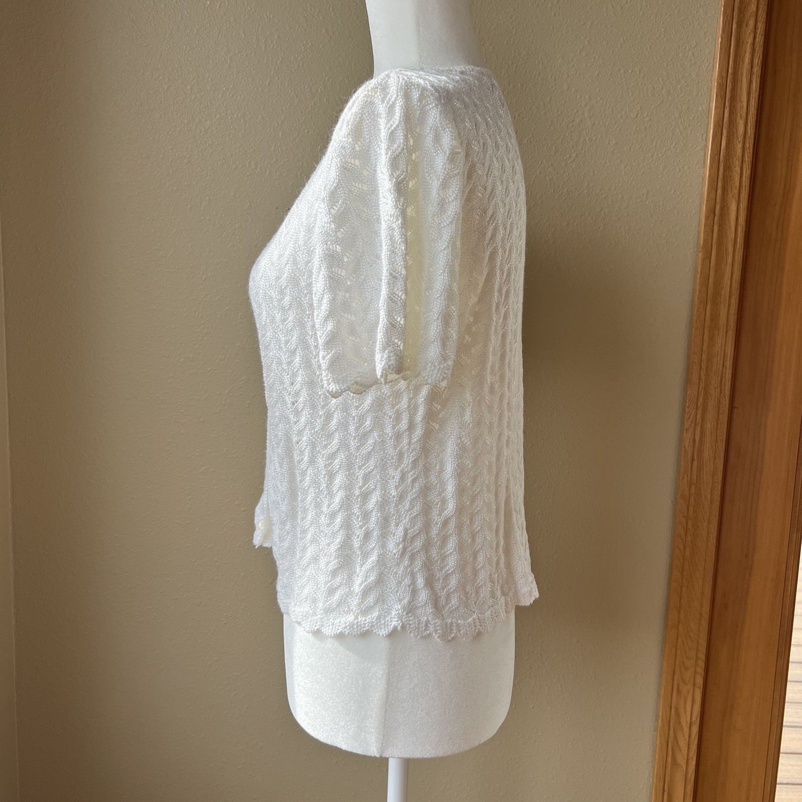 как выглядит Vintage Granny Knit Cardigan Sweater Women s M Button Soft White Top USA Made фото
