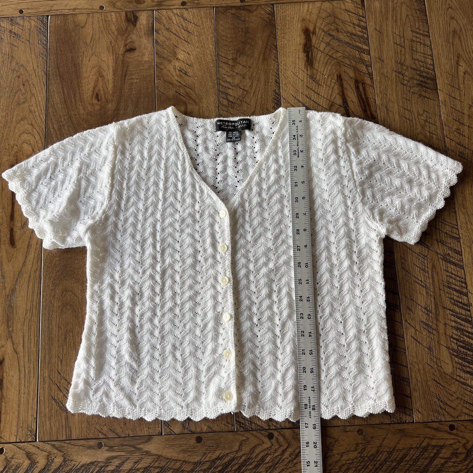 Vintage Granny Knit Cardigan Sweater Women s M Button Soft White Top USA Made