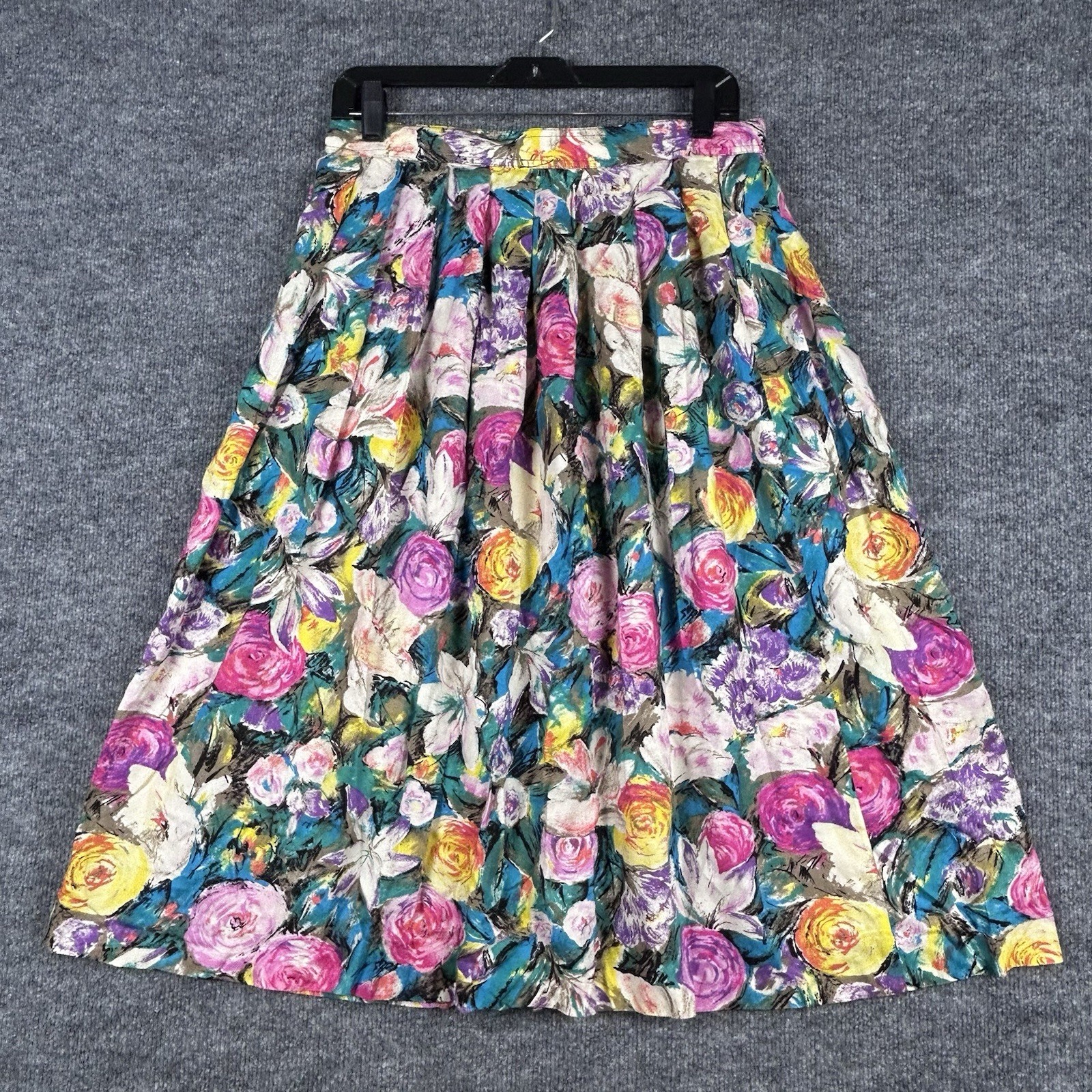 Vintage 80s 90s Floral Skirt 30 Waist Midi Modern 8 10 Pleated Rayon Grandma