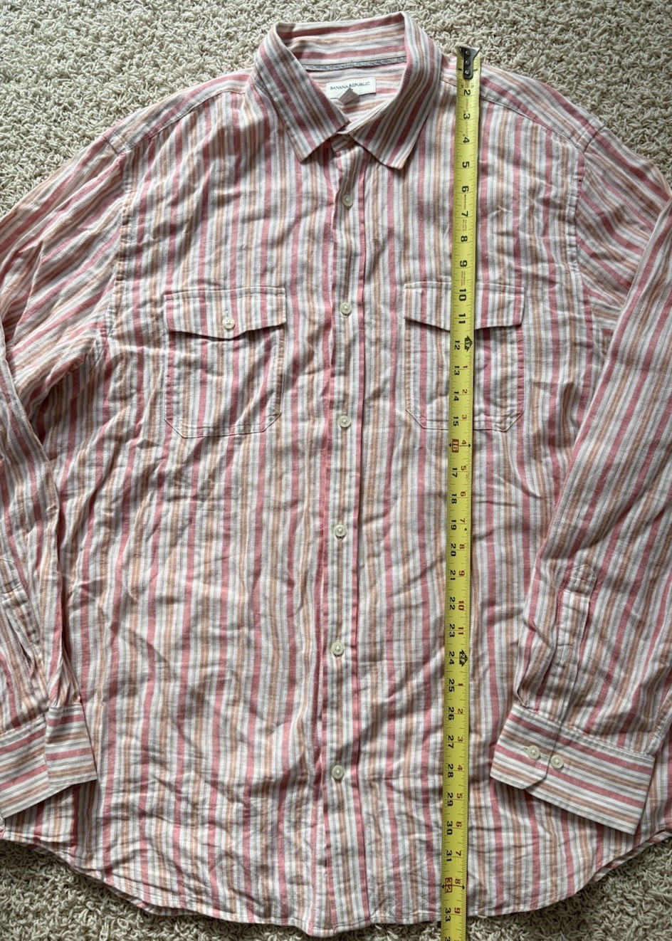 как выглядит Men s Banana Republic Tan Pink Striped Button Down Shirt Size XXL фото