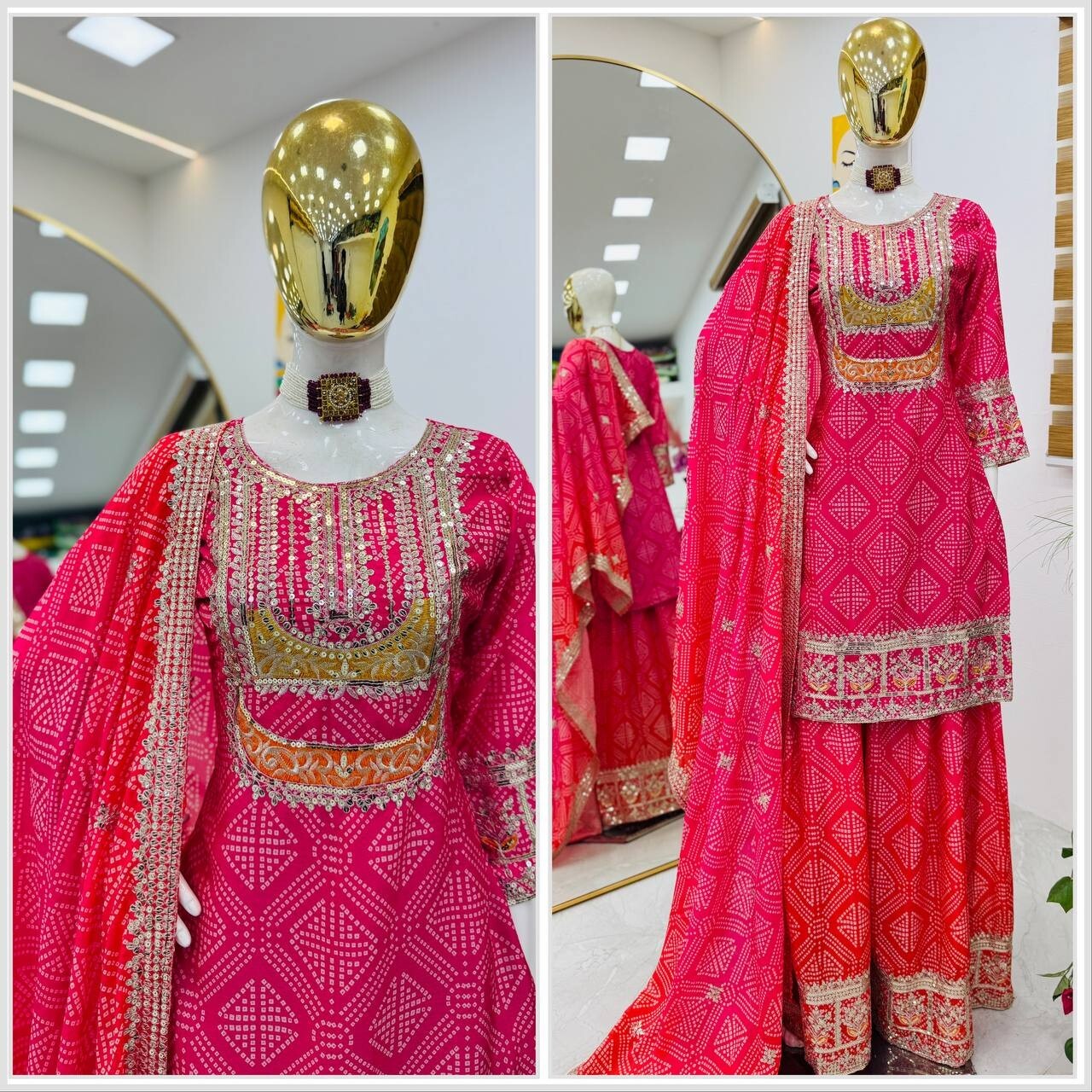 SHARARA WORK: Printed With Embroidery Sequence Work