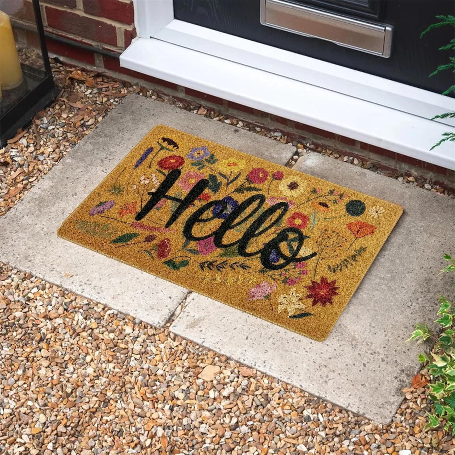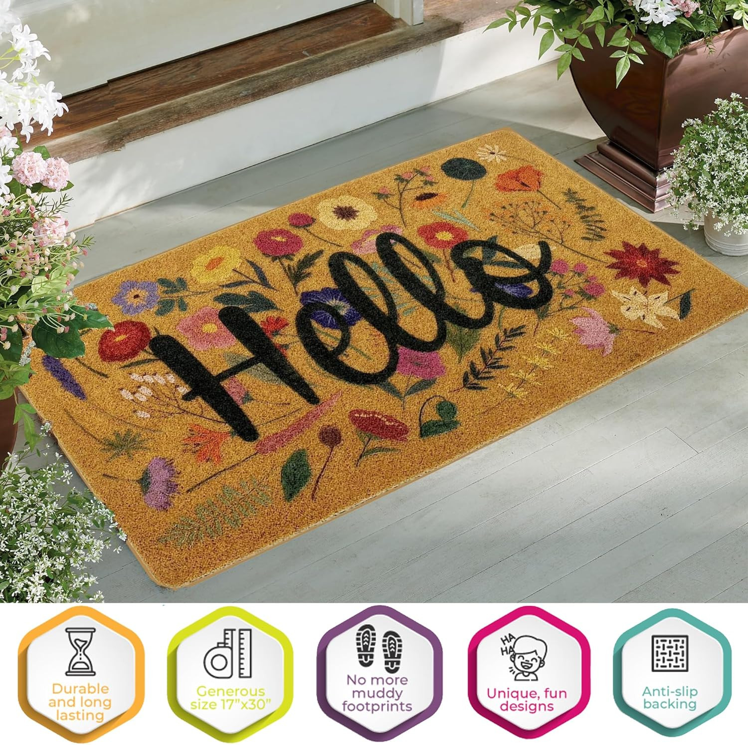 Floral Welcome Door Mat Non Slip Synthetic Coir Front Entrance Rug 17x29