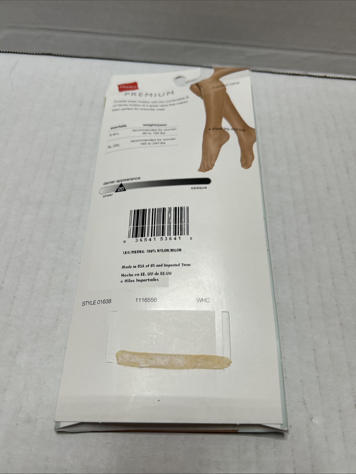 2 Pair New 2010 Hanes Solutions 100 Nylon Knee High Sheer Basic Sz XL/XXL Nude