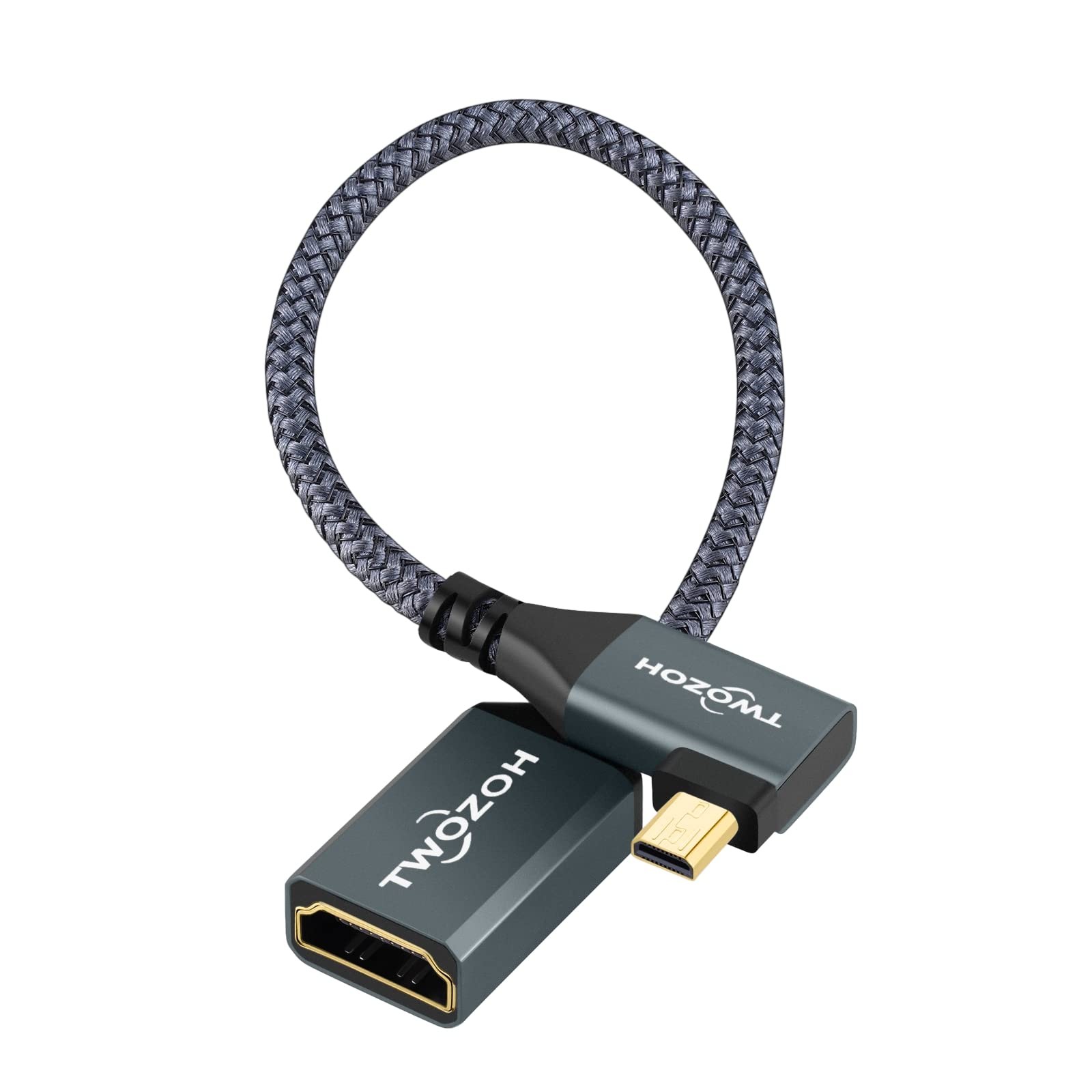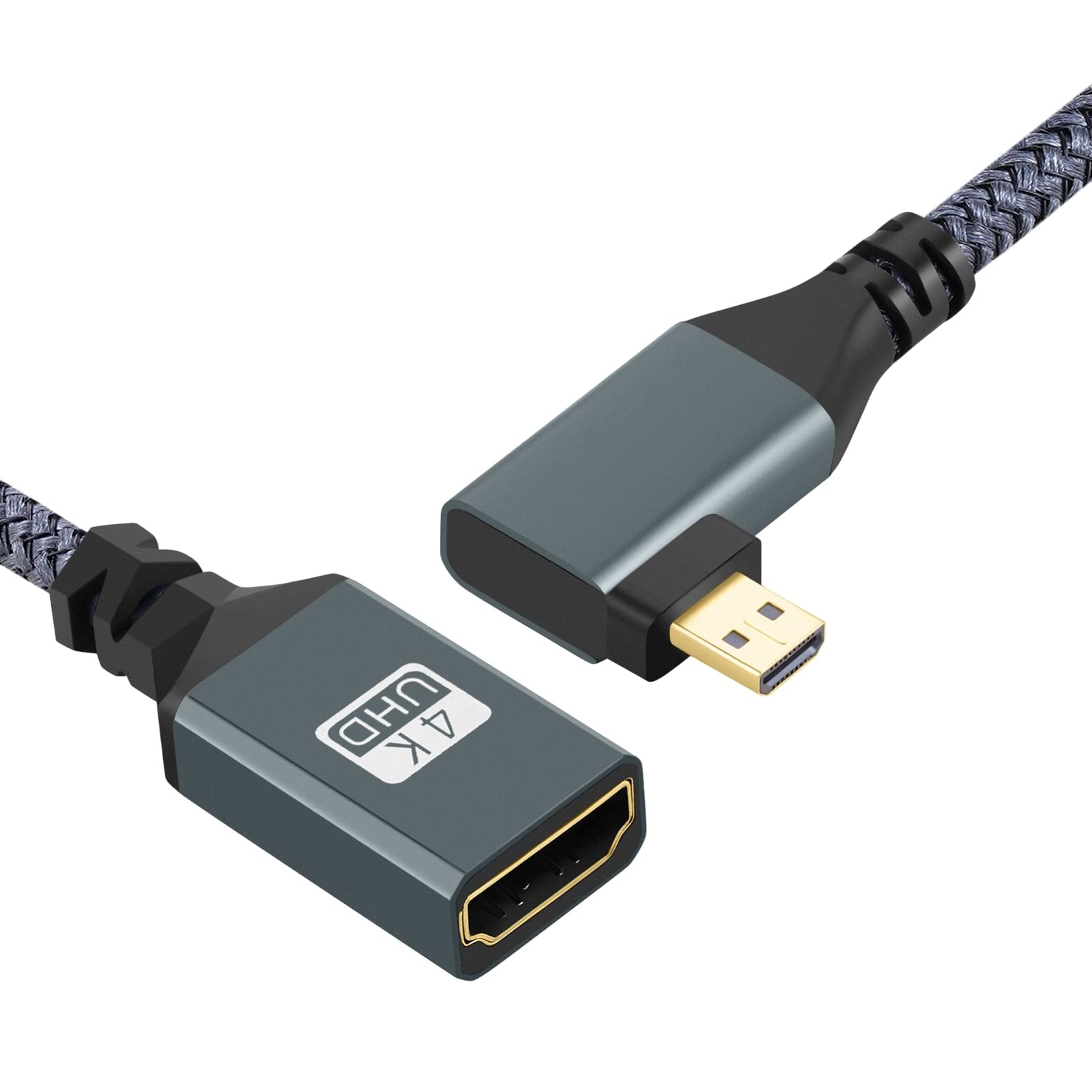 Left Angled Micro HDMI to HDMI Adapter Cable, Nylon Braided 90 Degree Micro H...