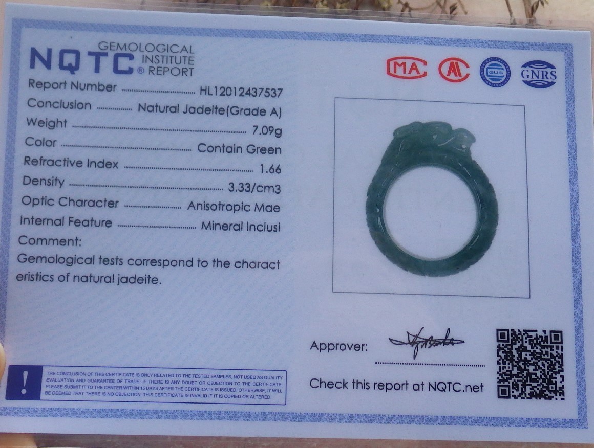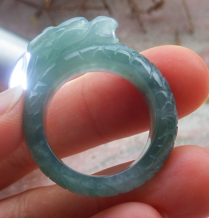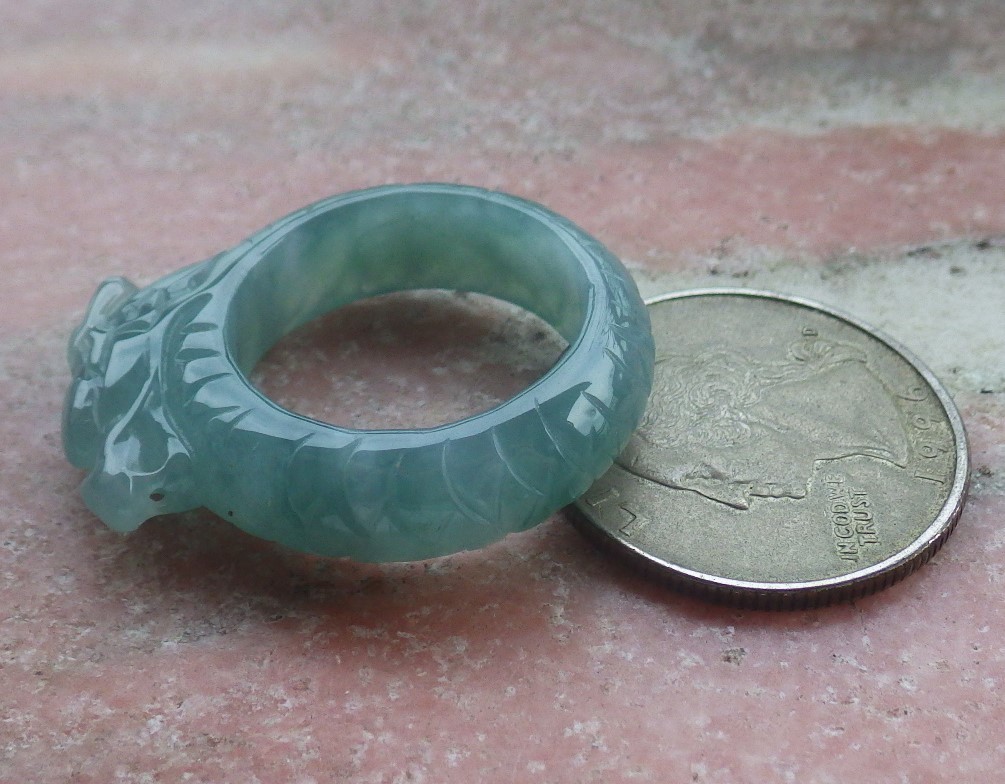 как выглядит Video Certified Green Natural A JADE Jadeite Dragon RING USA. 9.25   706170 AS фото