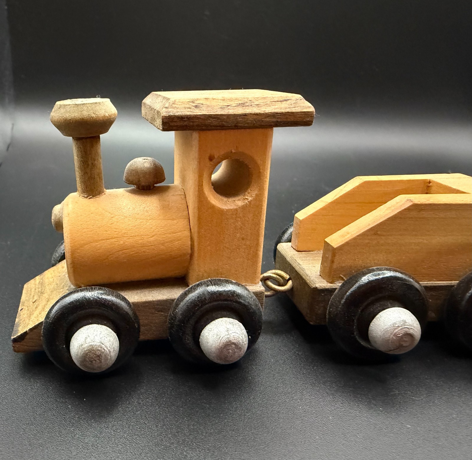 Vintage Wooden Toy Train Rolling Wheels Multi-Car Set