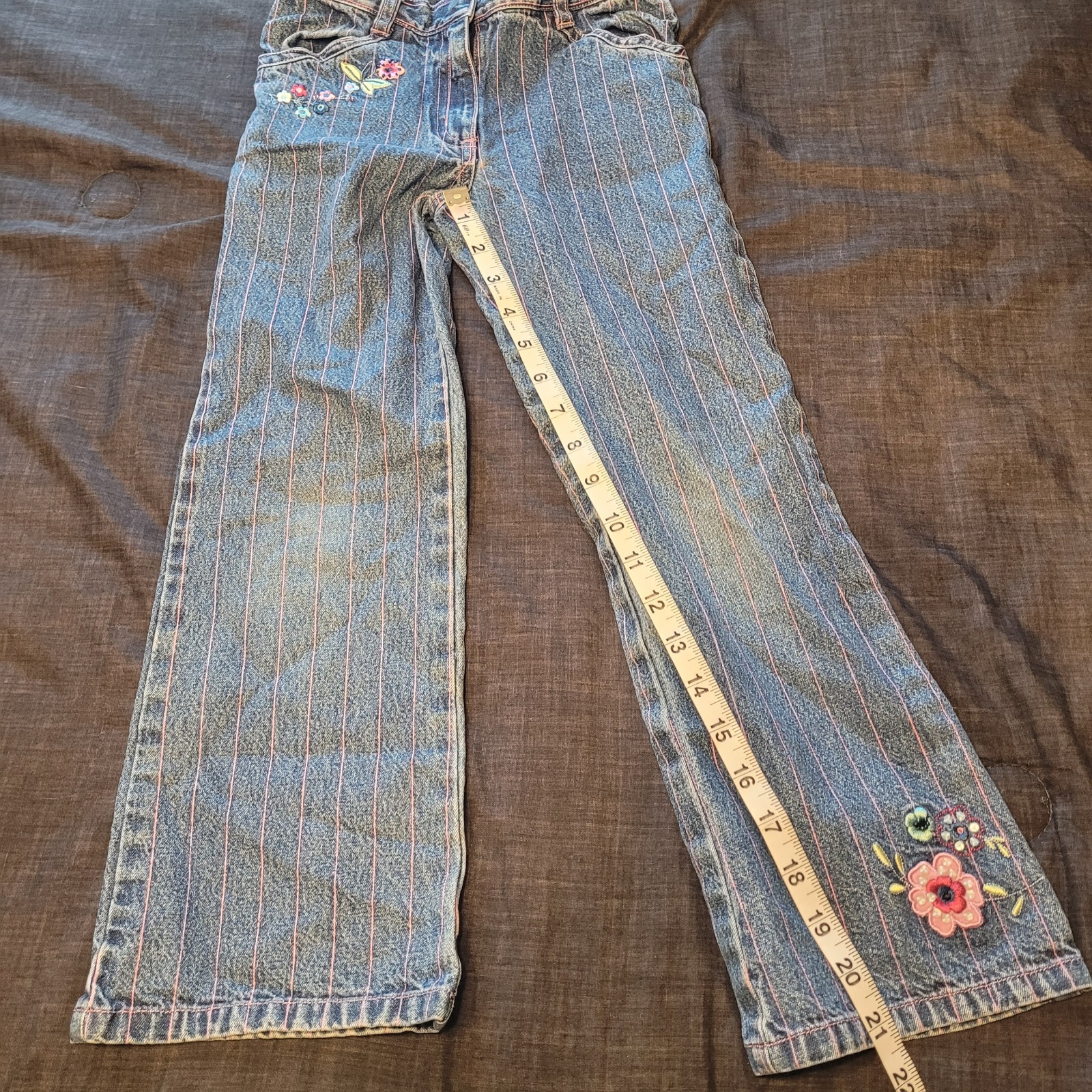 как выглядит Gymboree Chelsea Girl Size 7 Denim Bootcut Jeans pinstripe Floral Design фото