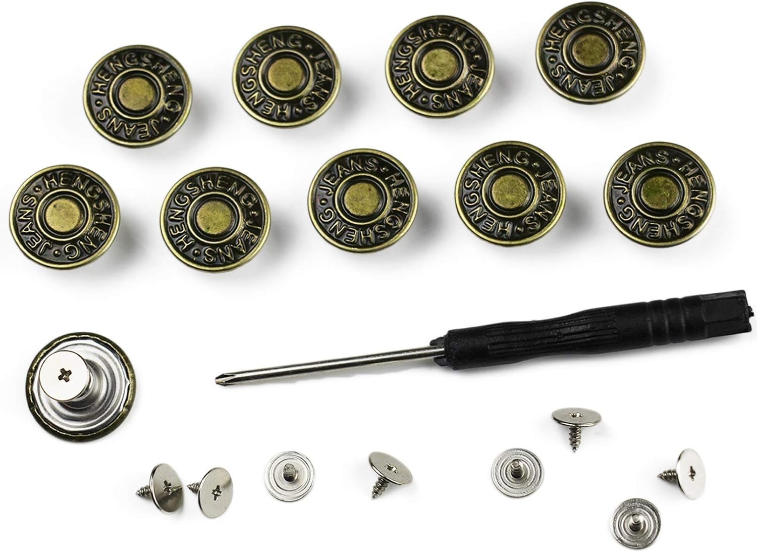 Jeans Buttons Replacement, Instant No Sew Buttons for Pants with Tool,17MM