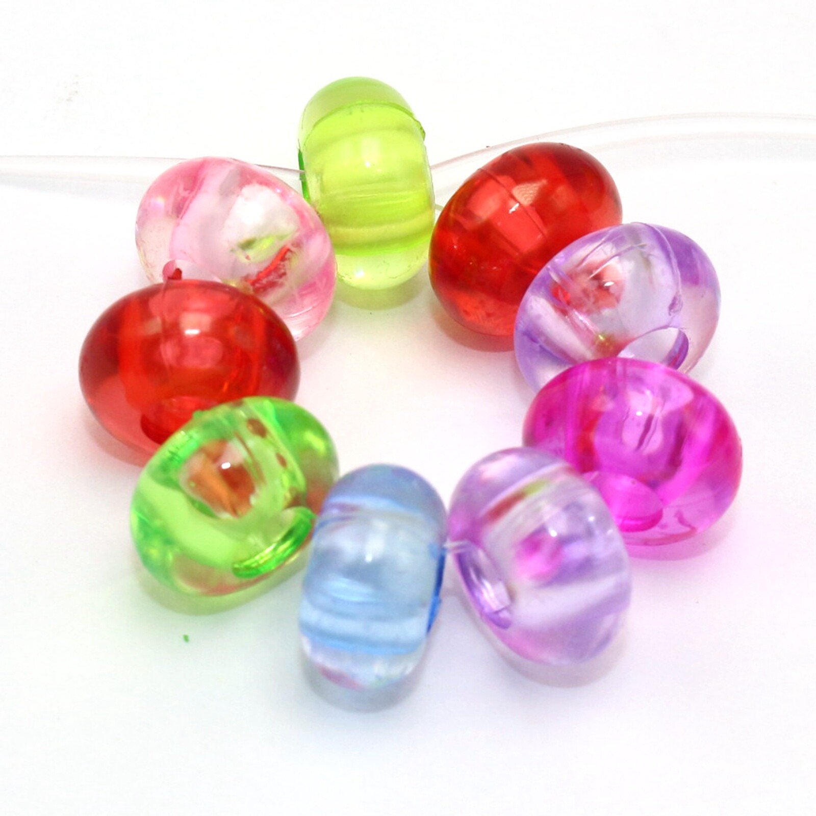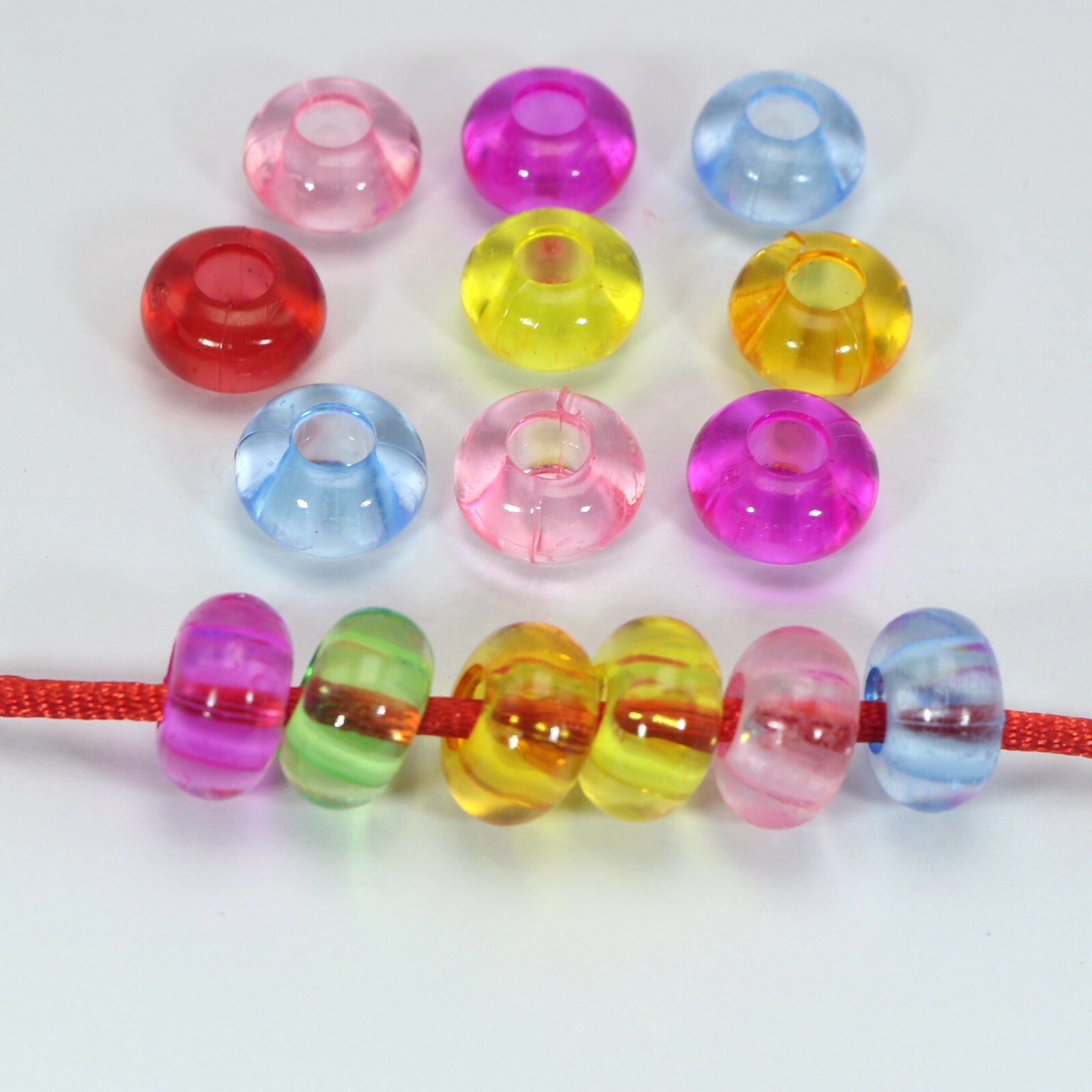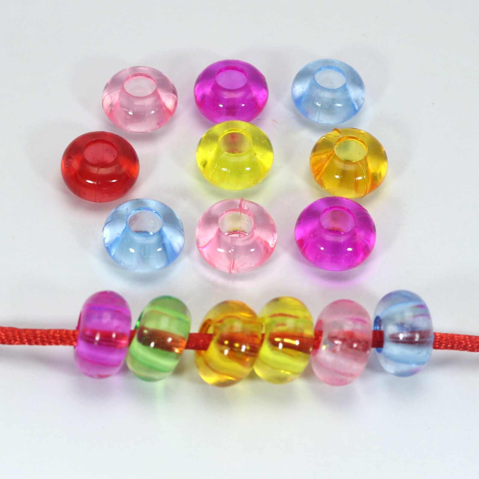 как выглядит 50 Mixed Transparent Color Acrylic Rondelle Spacer Beads 14mm With Big Hole 5mm фото