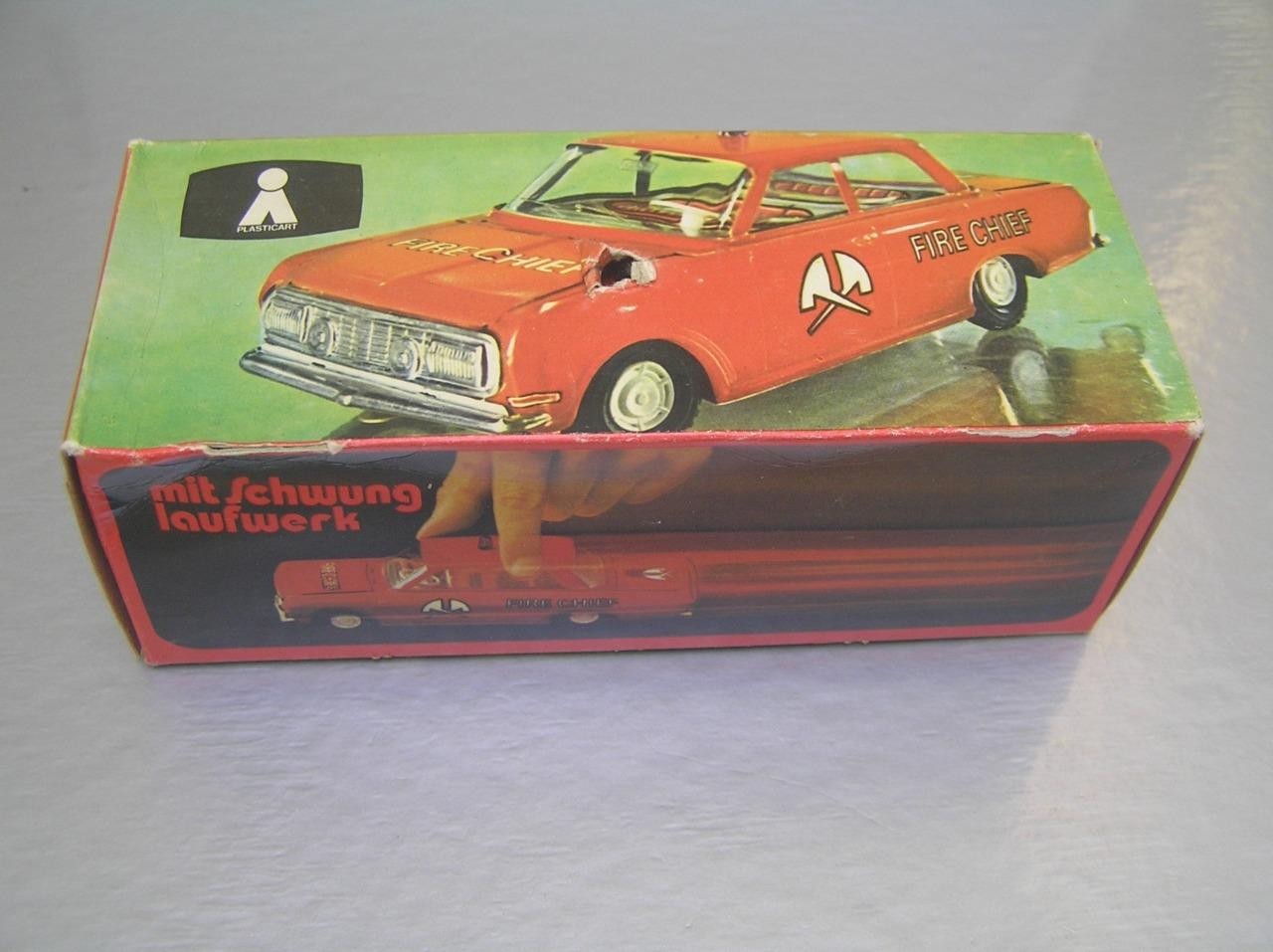 Tin Friction Opel Rekord Fire Chief made by Plasticart in East Germany rare NMIB