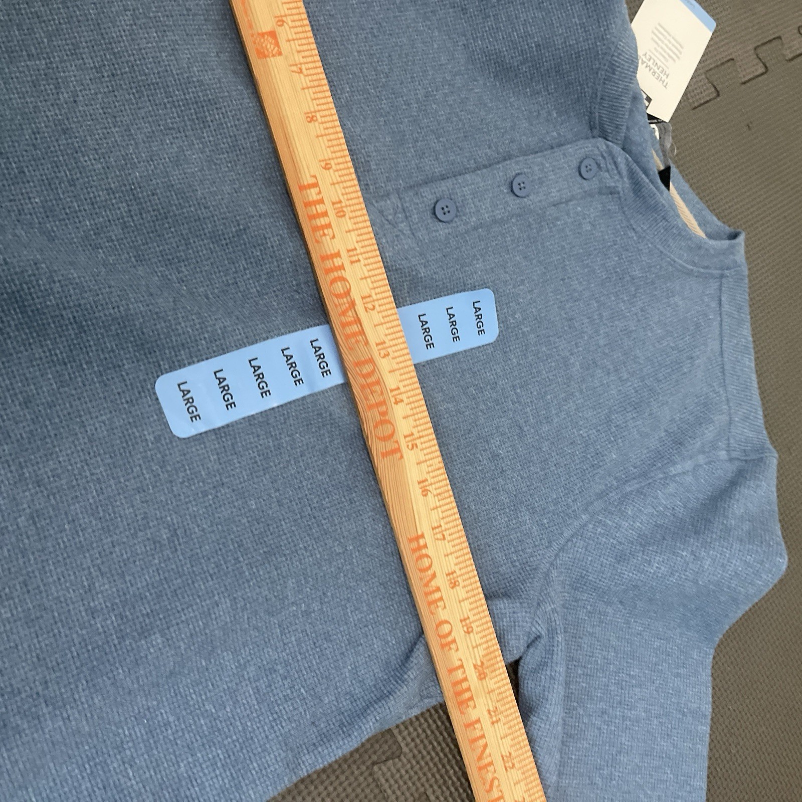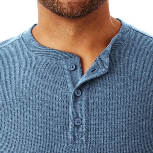 как выглядит Members Mark Mens Waffle Knit Soft Thermal Henley Classic Fit Blue Large фото
