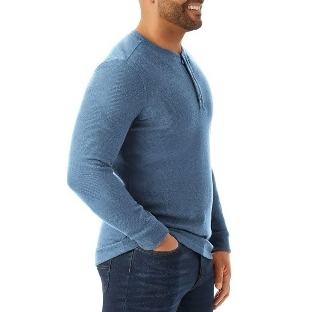 Member's Mark Men's Waffle Knit Soft Thermal Henley Classic Fit Blue Large