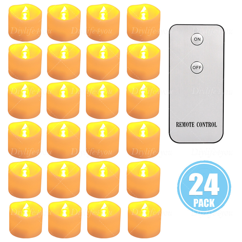 12/24Pcs LED Tea Lights Flickering with Remote Candles Votive Battery Operated