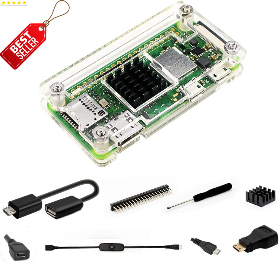 Raspberry Pi Zero Case, Case for Raspberry Pi Zero 2 W, with Heatsink, HDMI Adap