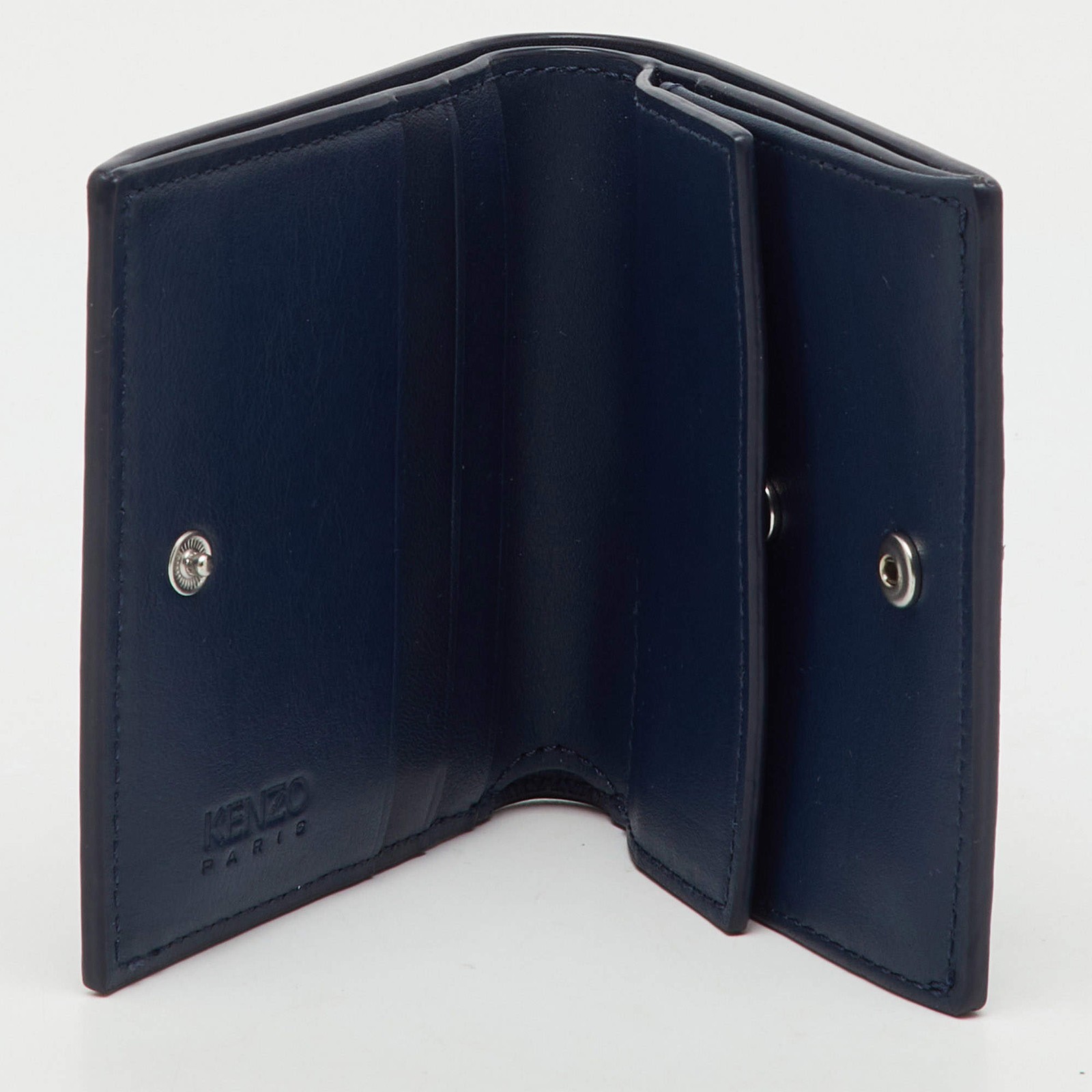 Kenzo Navy Blue Leather Boke Flower Logo Print Mini Bifold Wallet