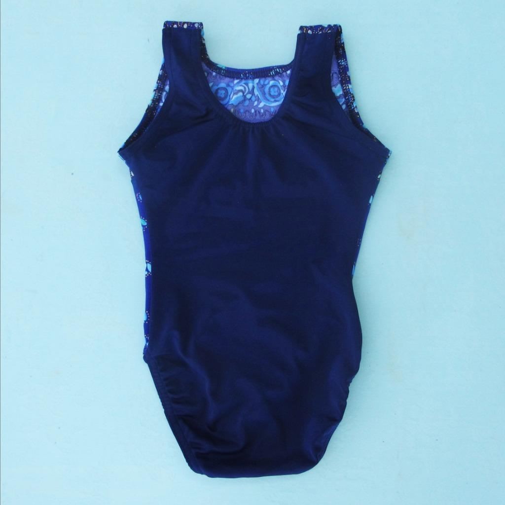 Gymnastics Leotard Girls sz CS Child 6 navy teal gold accents floral NEW leo